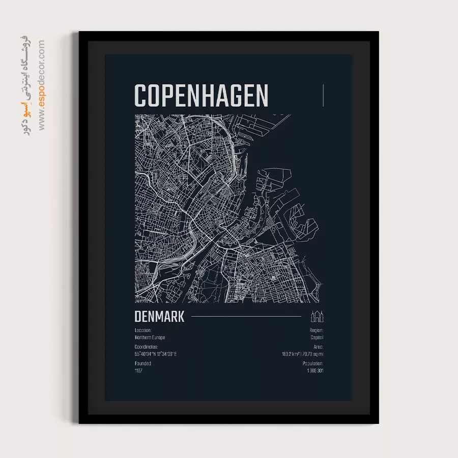 copenhagen – تابلو نقشه شهرهای جهان