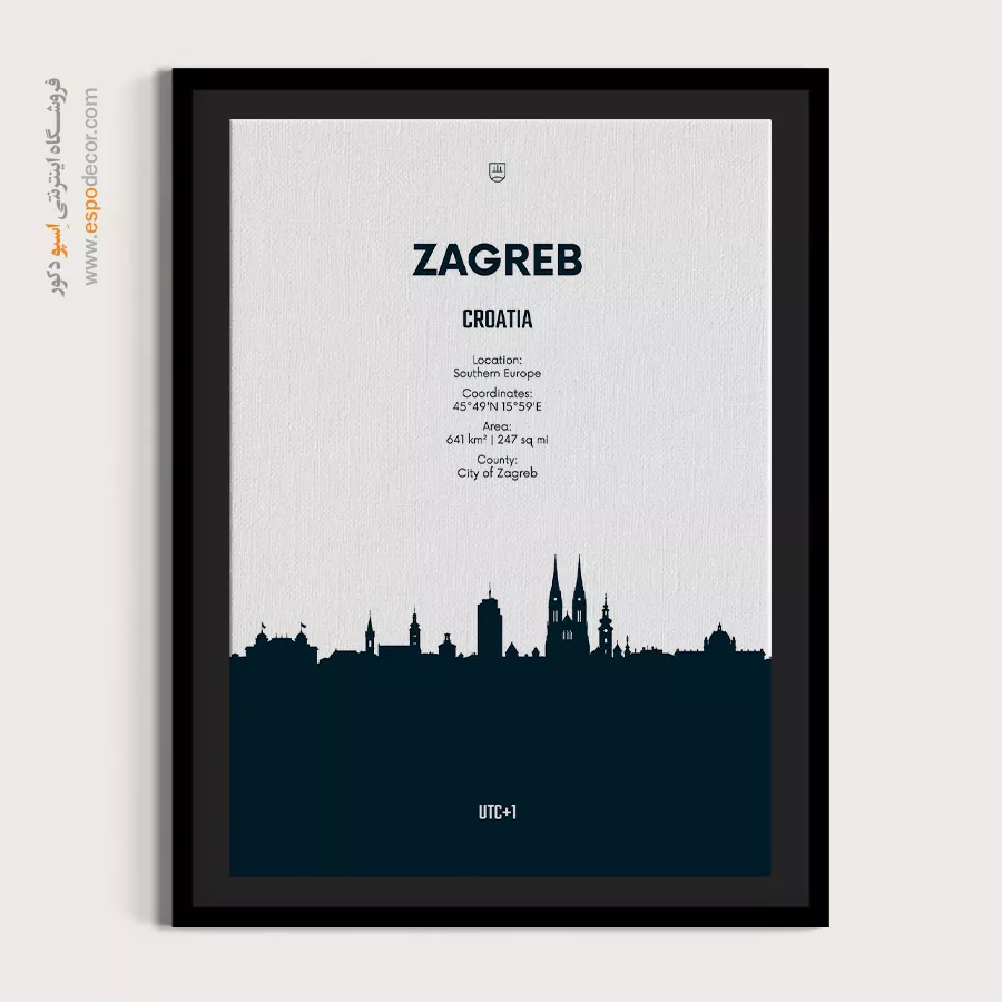 zagreb southern europe – تابلو نقشه شهرهای جهان