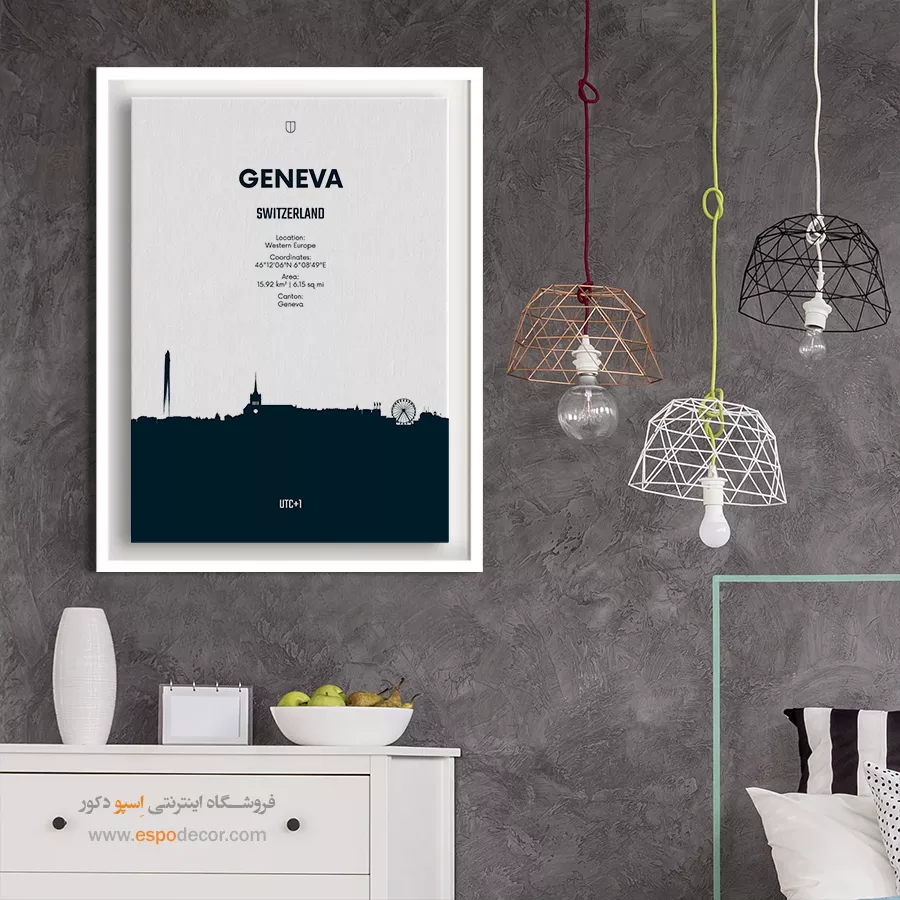 ‏geneva western europe – تابلو نقشه شهرهای جهان