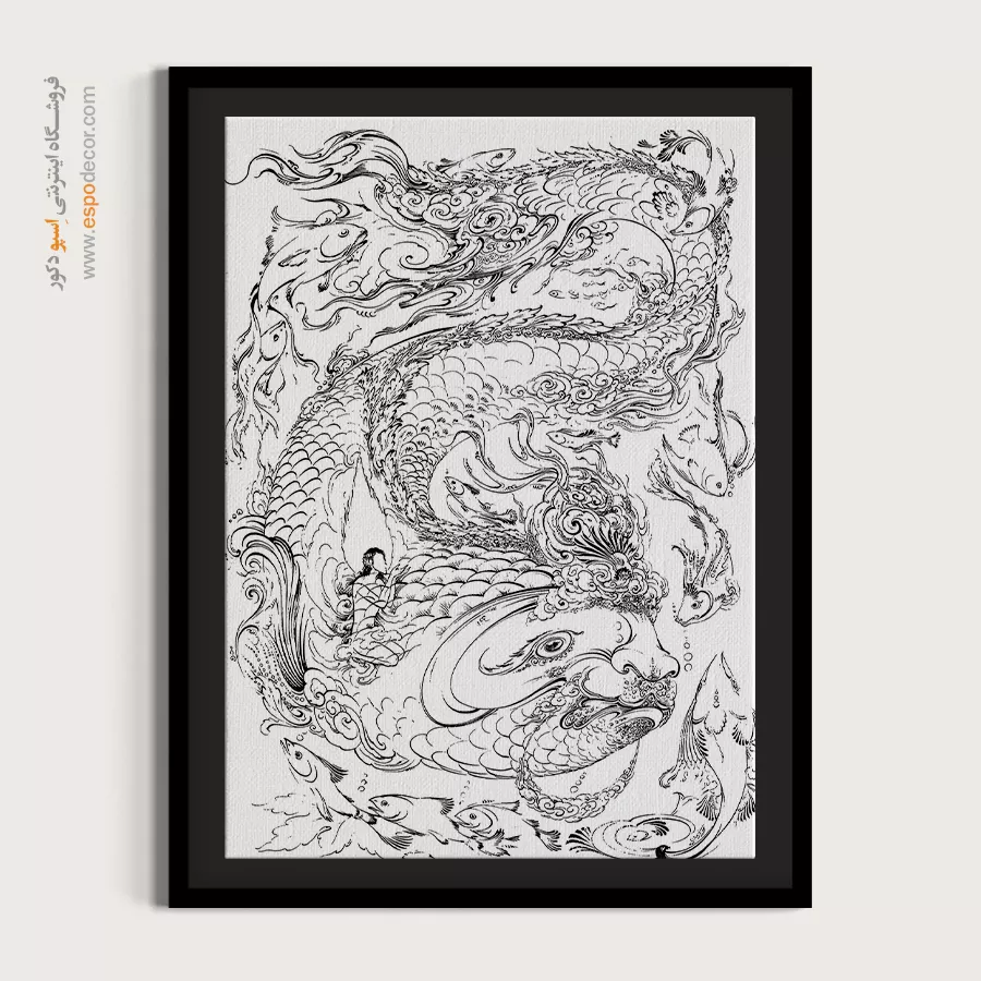 تابلو مینیاتور خطی با طراحی سیاه و سفید و سبک سنتی ایرانی، انتخابی خاص برای دکوراسیون کلاسیک و مینیمال است. این تابلو با قاب مینیمال، جلوهای آرامشبخش به دیوارهای خانه یا محل کار شما میبخشد.