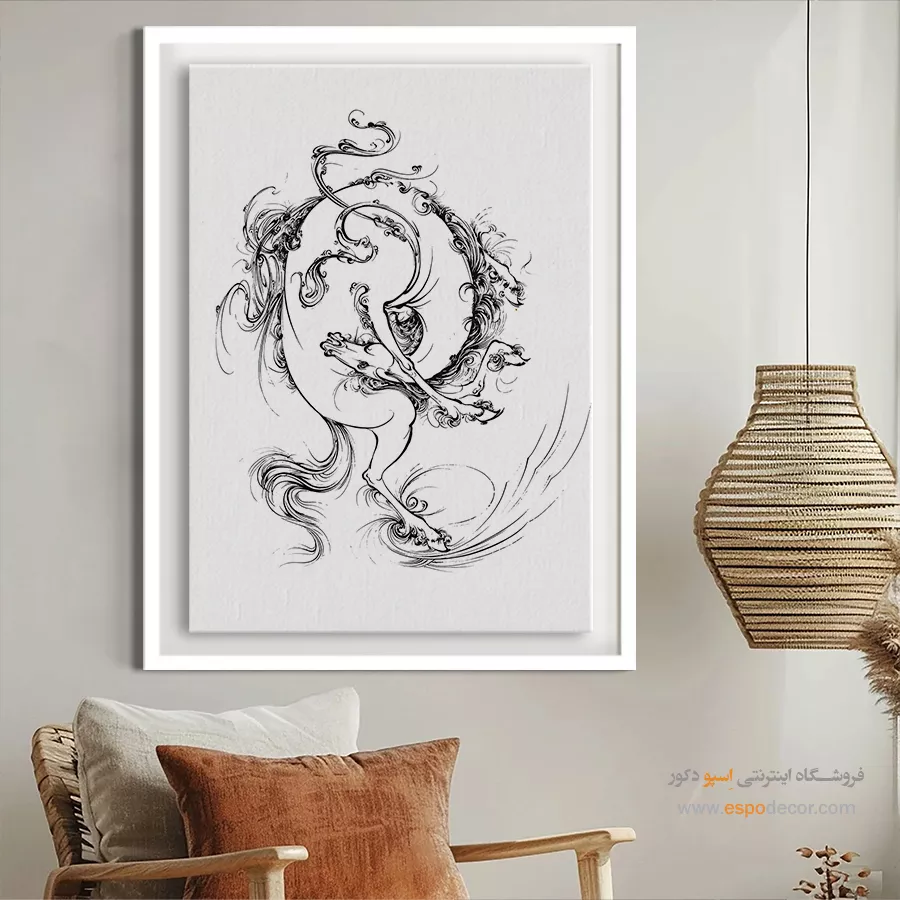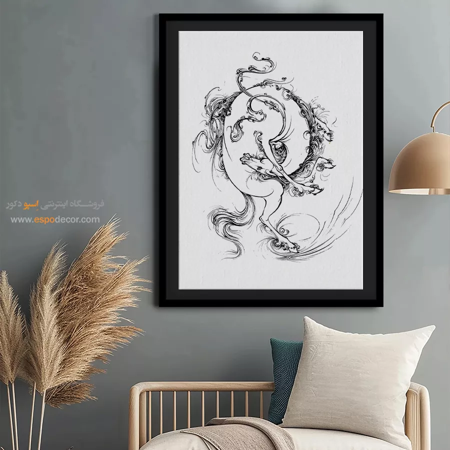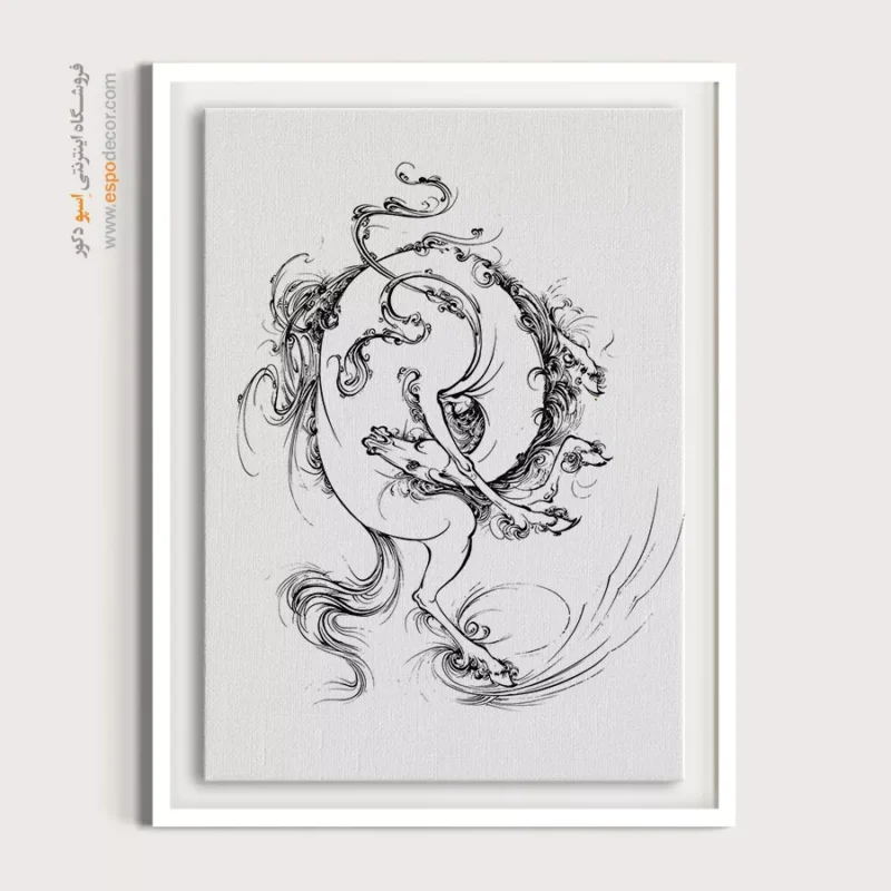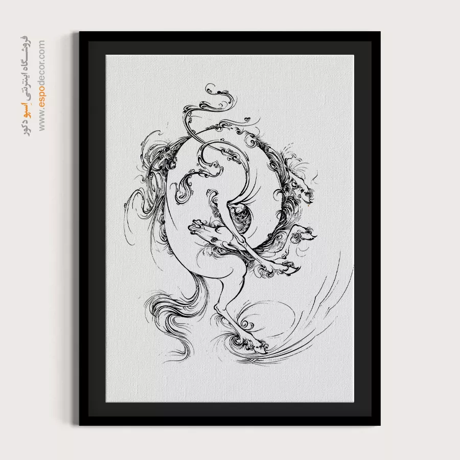 تابلو مینیاتور خطی با طراحی سیاه و سفید و سبک سنتی ایرانی، انتخابی خاص برای دکوراسیون کلاسیک و مینیمال است. این تابلو با قاب مینیمال، جلوهای آرامشبخش به دیوارهای خانه یا محل کار شما میبخشد.