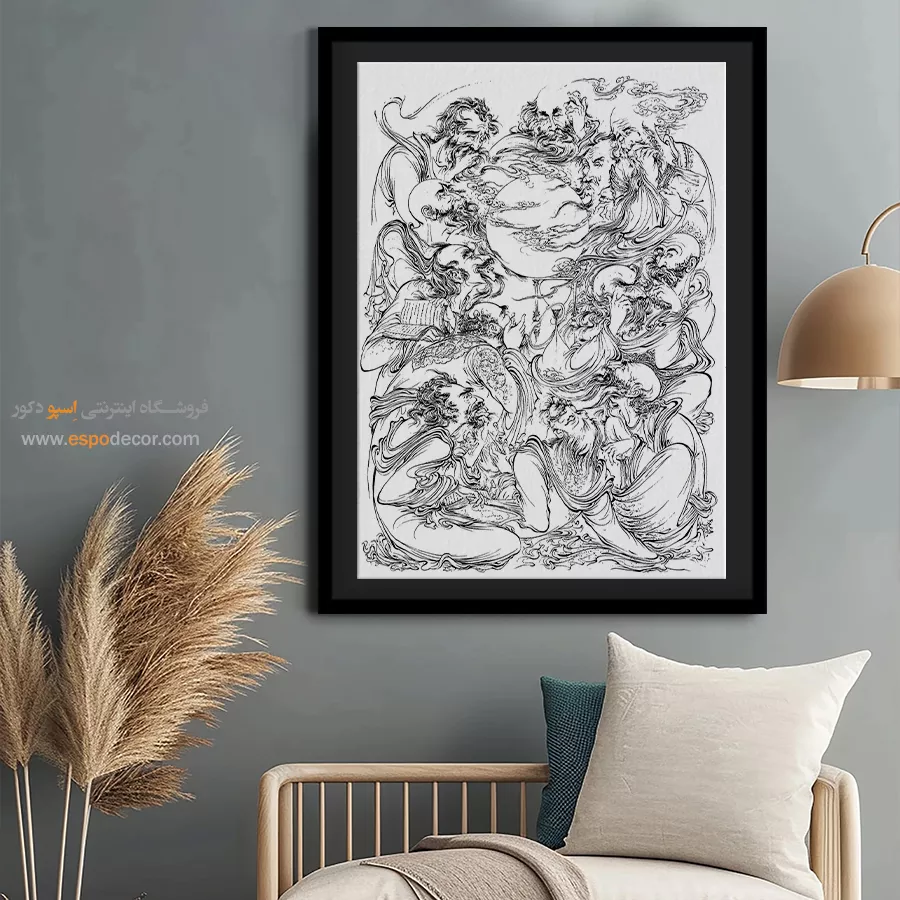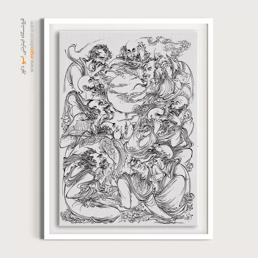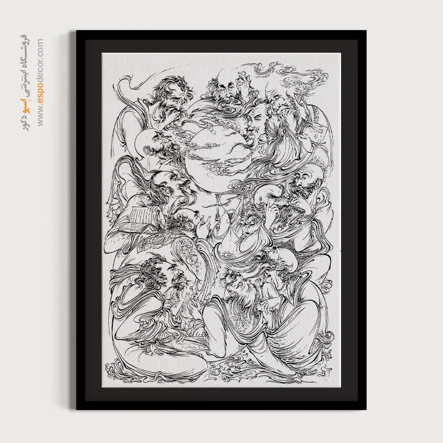 تابلو مینیاتور خطی با طراحی سیاه و سفید و سبک سنتی ایرانی، انتخابی خاص برای دکوراسیون کلاسیک و مینیمال است. این تابلو با قاب مینیمال، جلوهای آرامشبخش به دیوارهای خانه یا محل کار شما میبخشد.