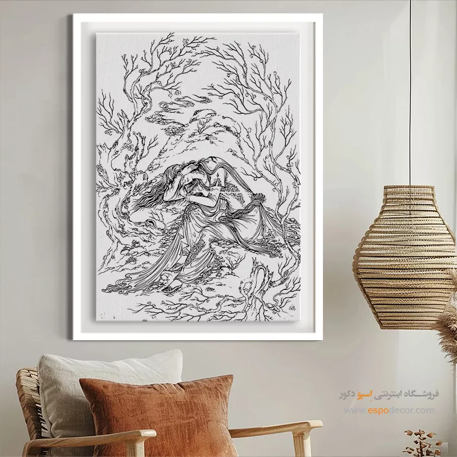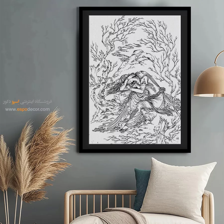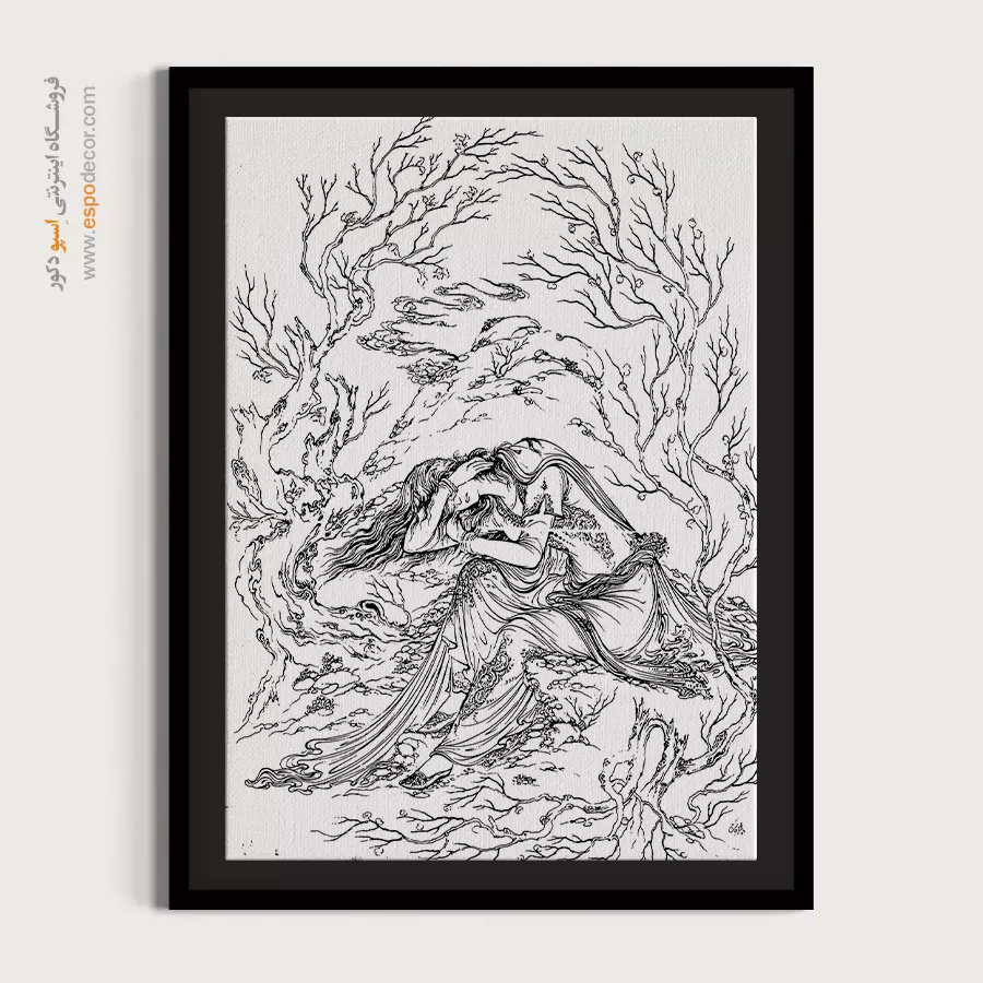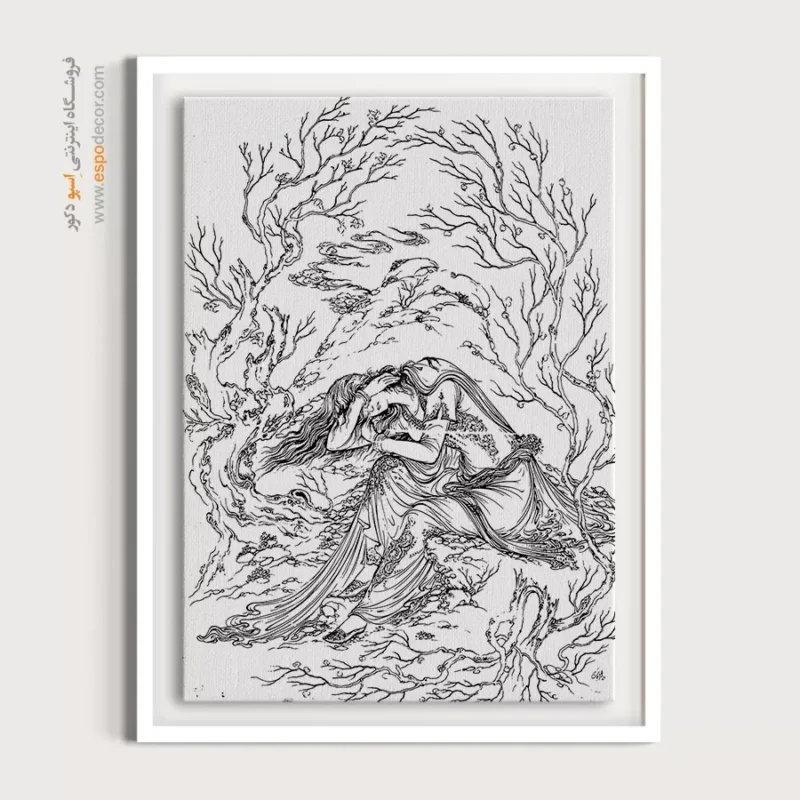 تابلو مینیاتور خطی با طراحی سیاه و سفید و سبک سنتی ایرانی، انتخابی خاص برای دکوراسیون کلاسیک و مینیمال است. این تابلو با قاب مینیمال، جلوهای آرامشبخش به دیوارهای خانه یا محل کار شما میبخشد.