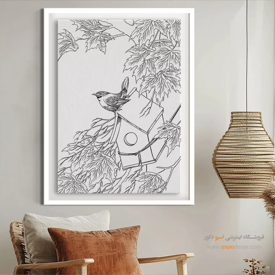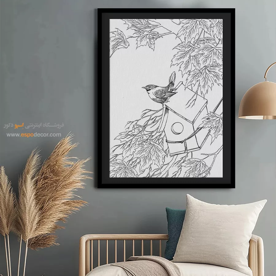 تابلو مینیاتور خطی با طراحی سیاه و سفید و سبک سنتی ایرانی، انتخابی خاص برای دکوراسیون کلاسیک و مینیمال است. این تابلو با قاب مینیمال، جلوهای آرامشبخش به دیوارهای خانه یا محل کار شما میبخشد.
