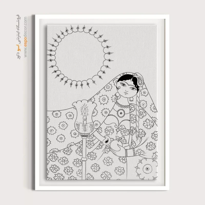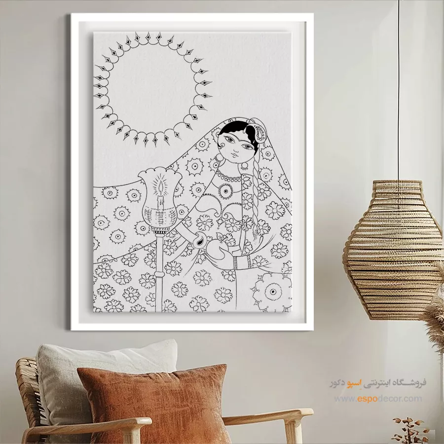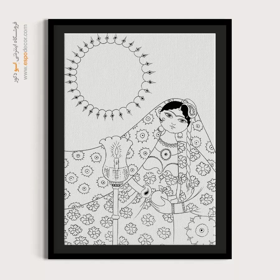 تابلو مینیاتور خطی با طراحی سیاه و سفید و سبک سنتی ایرانی، انتخابی خاص برای دکوراسیون کلاسیک و مینیمال است. این تابلو با قاب مینیمال، جلوهای آرامشبخش به دیوارهای خانه یا محل کار شما میبخشد.