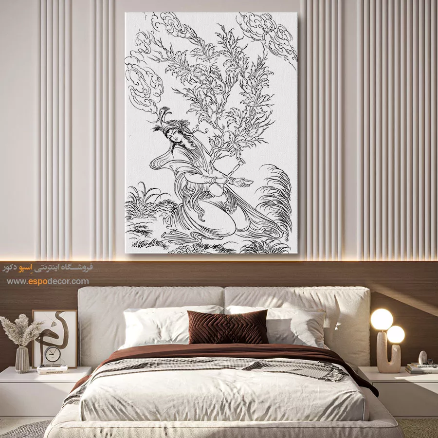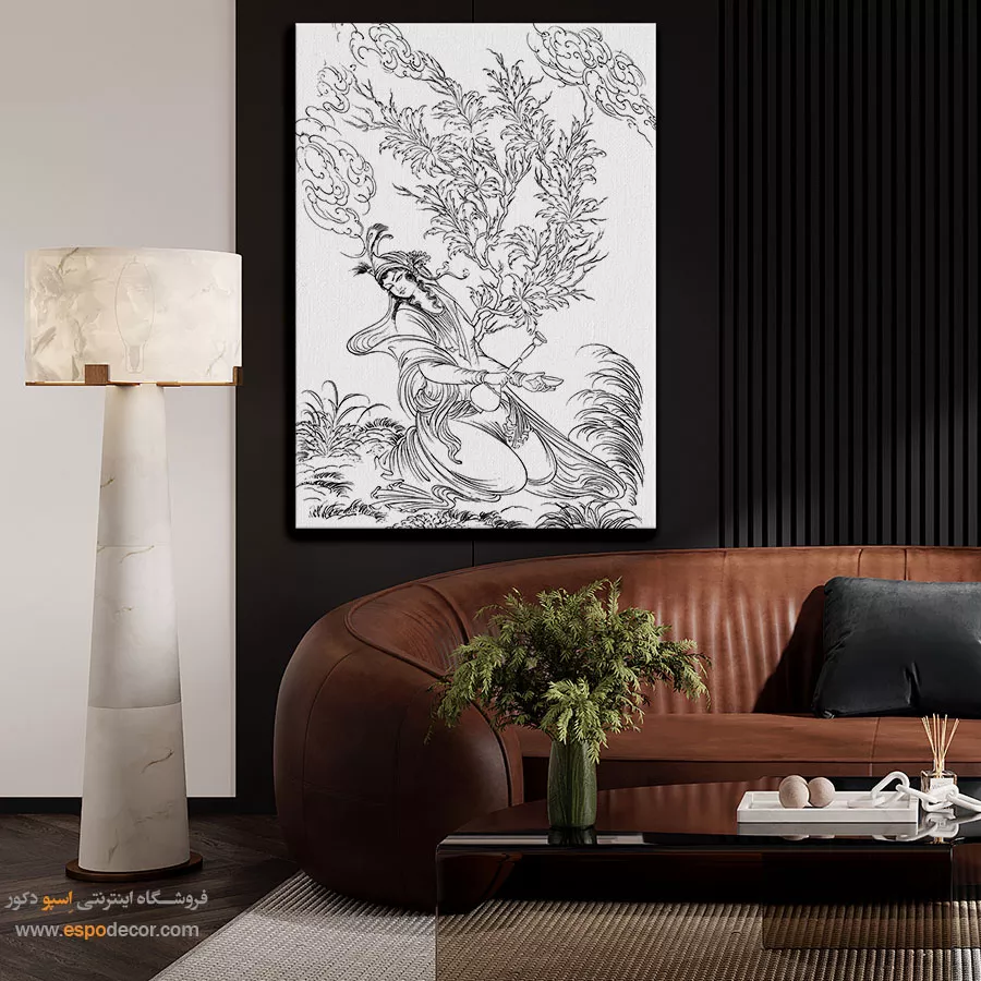 تابلو مینیاتور خطی با طراحی سیاه و سفید و سبک سنتی ایرانی، انتخابی خاص برای دکوراسیون کلاسیک و مینیمال است. این تابلو با قاب مینیمال، جلوهای آرامشبخش به دیوارهای خانه یا محل کار شما میبخشد.