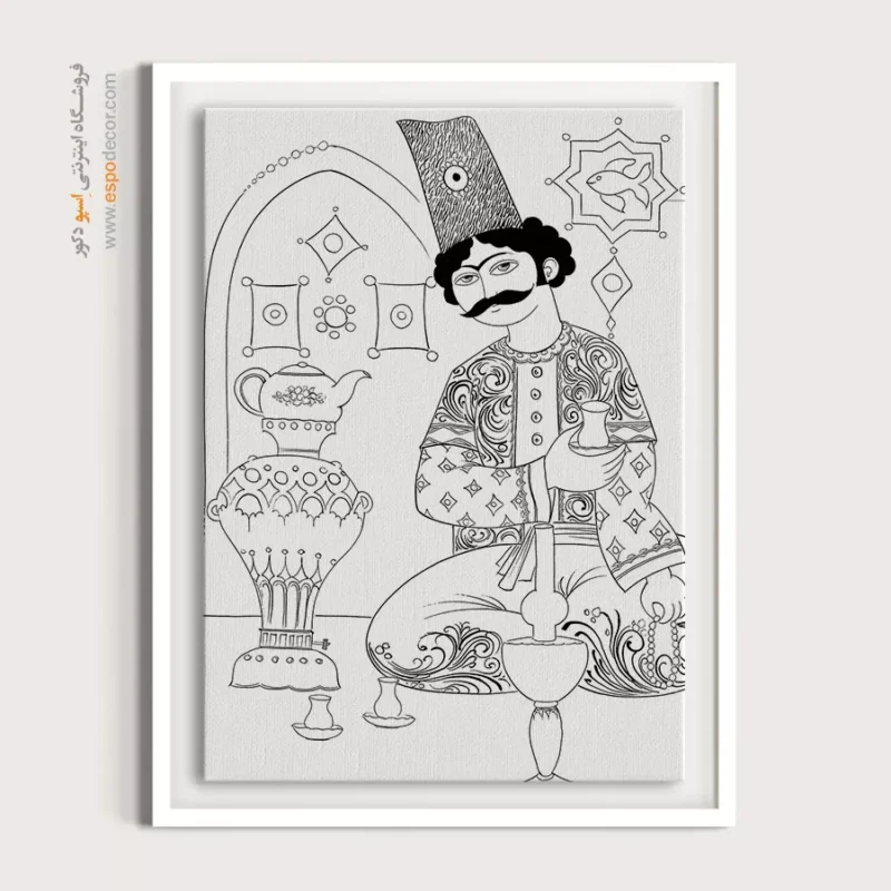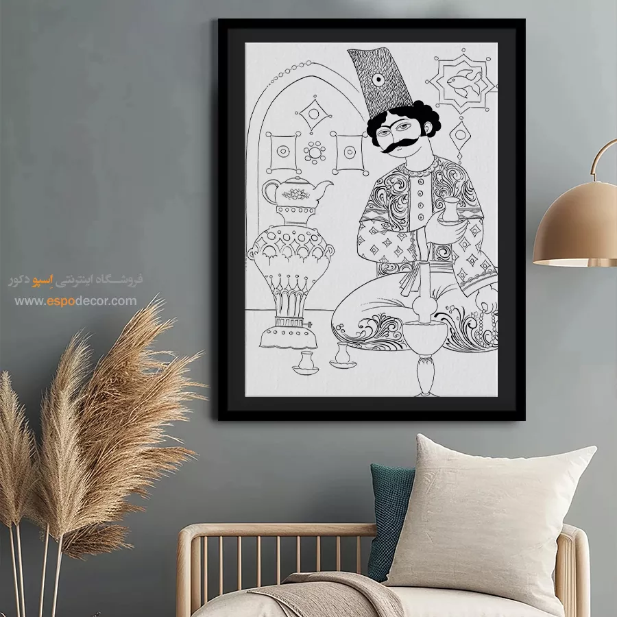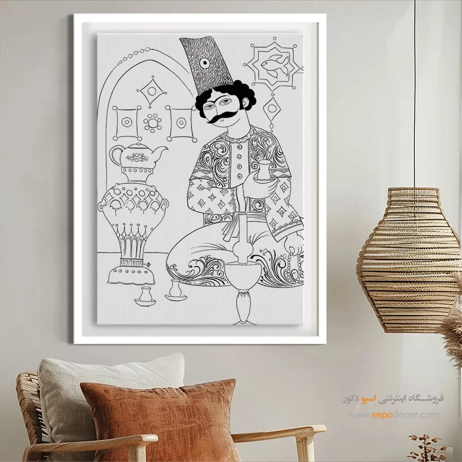تابلو مینیاتور خطی با طراحی سیاه و سفید و سبک سنتی ایرانی، انتخابی خاص برای دکوراسیون کلاسیک و مینیمال است. این تابلو با قاب مینیمال، جلوهای آرامشبخش به دیوارهای خانه یا محل کار شما میبخشد.