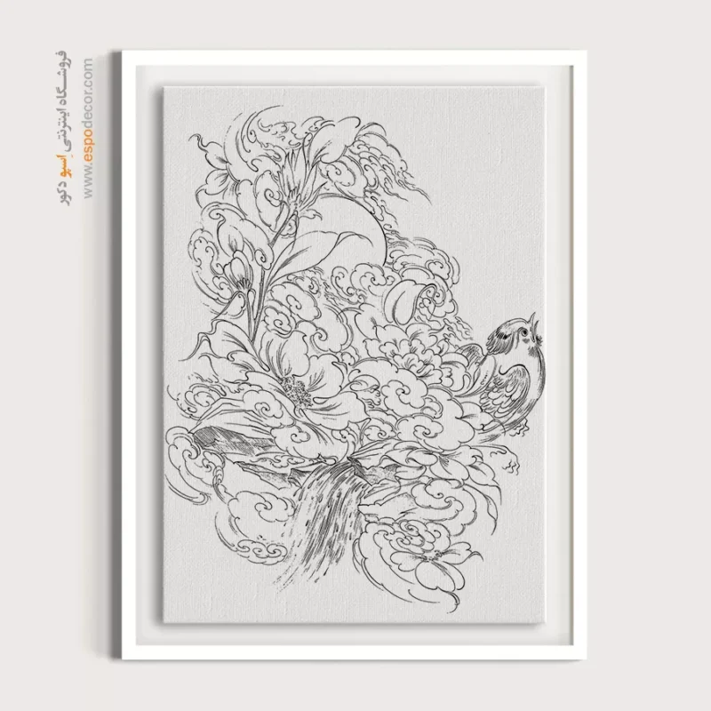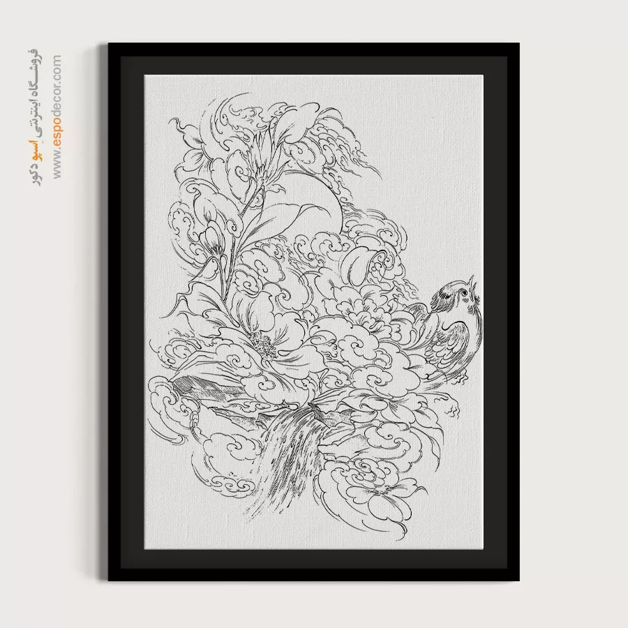 تابلو مینیاتور خطی با طراحی سیاه و سفید و سبک سنتی ایرانی، انتخابی خاص برای دکوراسیون کلاسیک و مینیمال است. این تابلو با قاب مینیمال، جلوهای آرامشبخش به دیوارهای خانه یا محل کار شما میبخشد.