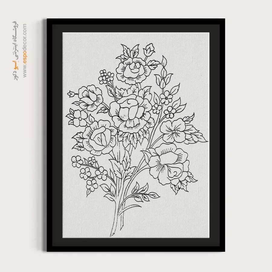 تابلو مینیاتور خطی با طراحی سیاه و سفید و سبک سنتی ایرانی، انتخابی خاص برای دکوراسیون کلاسیک و مینیمال است. این تابلو با قاب مینیمال، جلوهای آرامشبخش به دیوارهای خانه یا محل کار شما میبخشد.