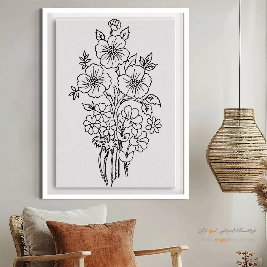 - ادامه طرح اصلی تا کنارههای بوم: ما در اسپو دکور از این روش استفاده میکنیم تا تابلو حالت منسجم و یکپارچه داشته باشد و از نمای کناری نیز جذاب دیده شود.