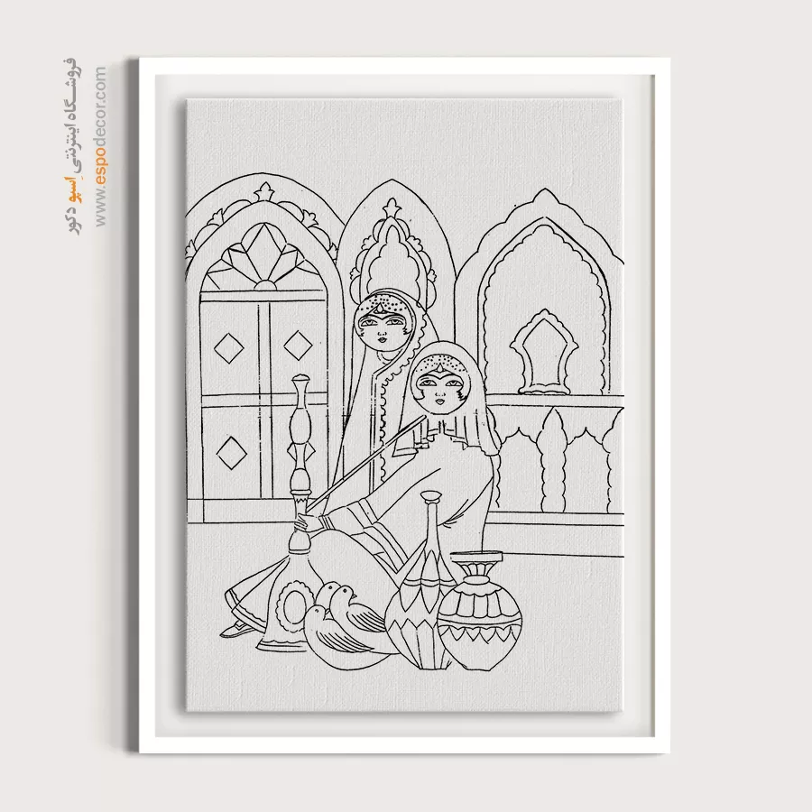 تابلو مینیاتور خطی با طراحی سیاه و سفید و سبک سنتی ایرانی، انتخابی خاص برای دکوراسیون کلاسیک و مینیمال است. این تابلو با قاب مینیمال، جلوهای آرامشبخش به دیوارهای خانه یا محل کار شما میبخشد.