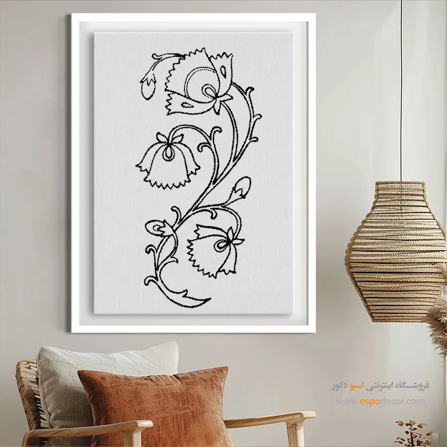 تابلو مینیاتور خطی با طراحی سیاه و سفید و سبک سنتی ایرانی، انتخابی خاص برای دکوراسیون کلاسیک و مینیمال است. این تابلو با قاب مینیمال، جلوهای آرامشبخش به دیوارهای خانه یا محل کار شما میبخشد.