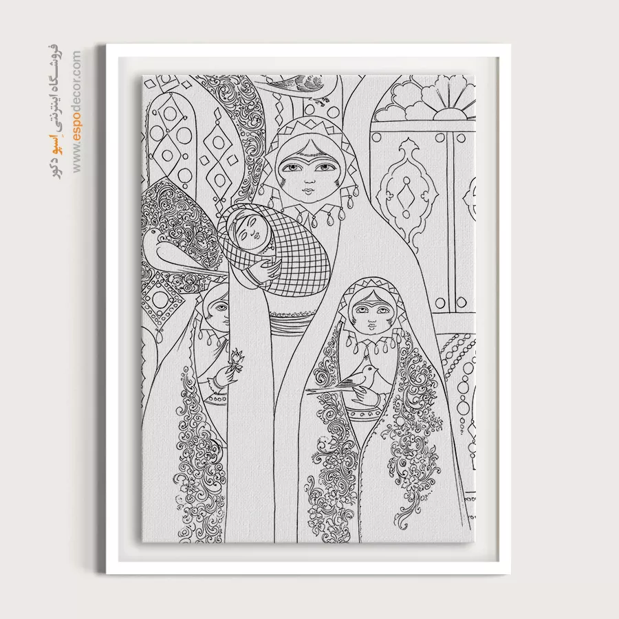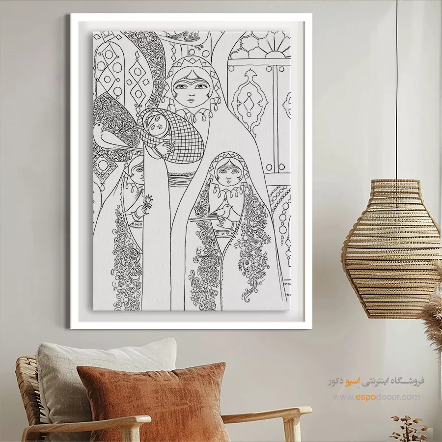 تابلو مینیاتور خطی با طراحی سیاه و سفید و سبک سنتی ایرانی، انتخابی خاص برای دکوراسیون کلاسیک و مینیمال است. این تابلو با قاب مینیمال، جلوهای آرامشبخش به دیوارهای خانه یا محل کار شما میبخشد.