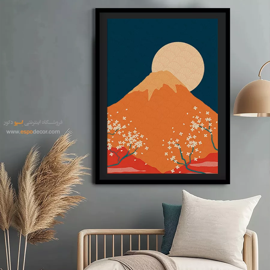 - انتخاب رنگهای مکمل یا متضاد: مانند تابلویی با تناژ نارنجی برای دیوار آبی، که تضاد جذاب و پویایی ایجاد میکند و تابلو را به نقطه کانونی تبدیل میکند.