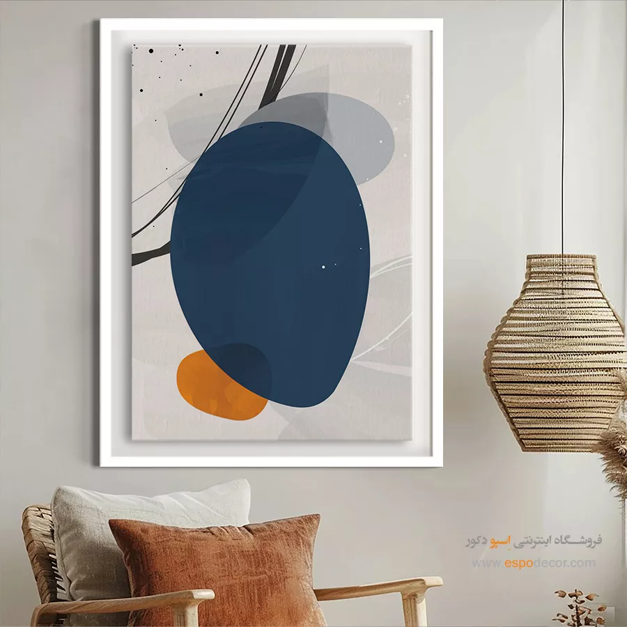 - انتخاب رنگهای مکمل یا متضاد: مانند تابلویی با تناژ نارنجی برای دیوار آبی، که تضاد جذاب و پویایی ایجاد میکند و تابلو را به نقطه کانونی تبدیل میکند.