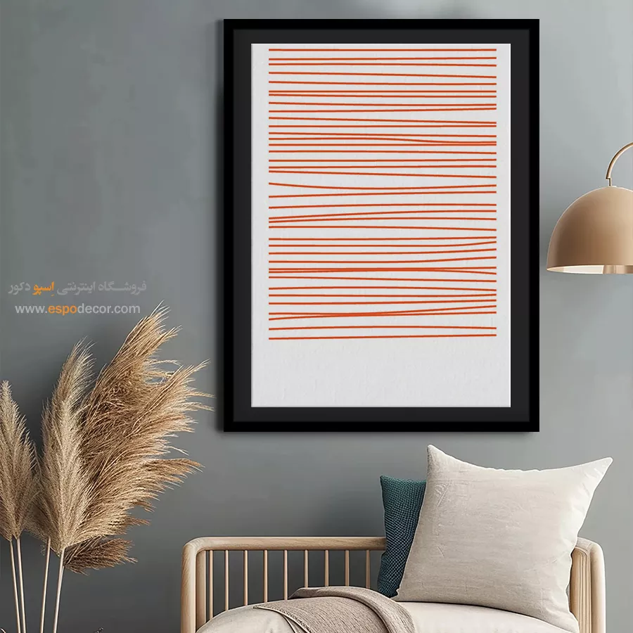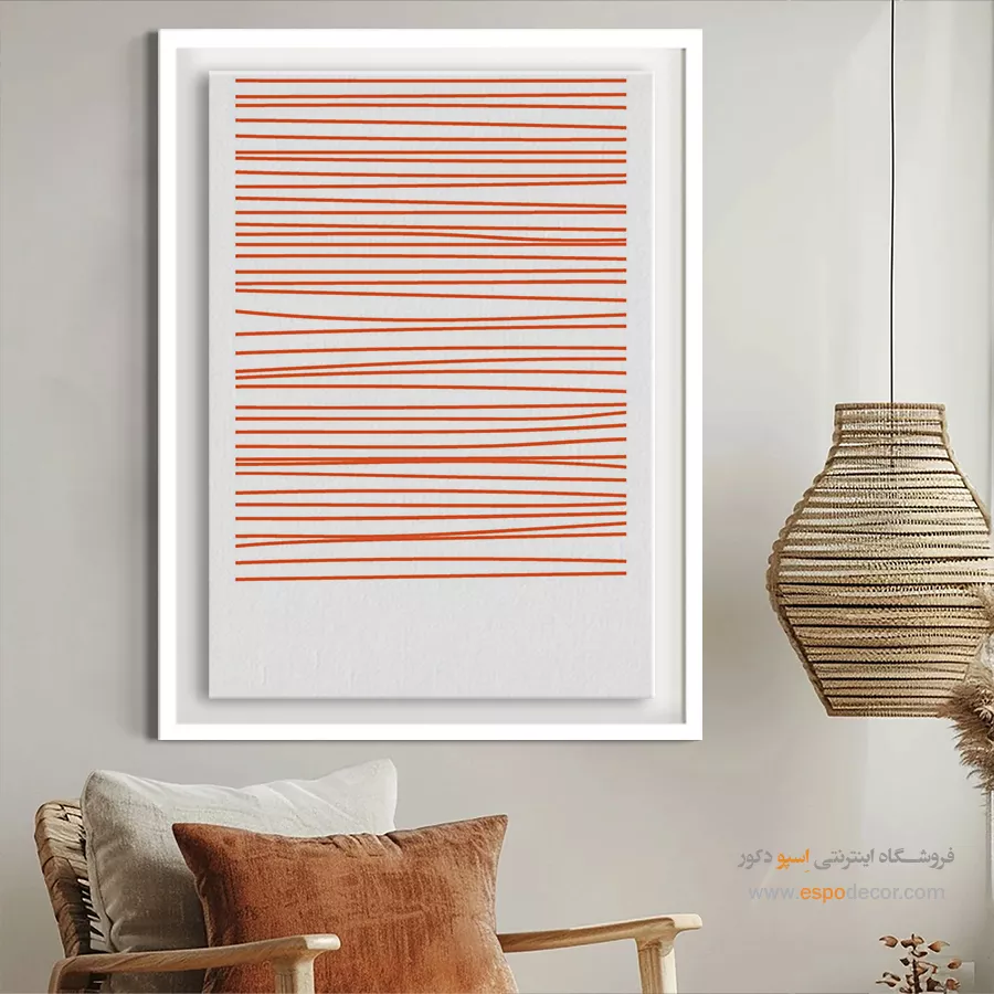 سبک مینیمال: تمرکز بر سادگی است. تابلوهای مینیمال آرت با خطوط ساده، اشکال هندسی و پالت رنگی خنثی (مانند سیاه، سفید، خاکستری یا بژ) ایدهآل هستند. این تابلوها اغلب بدون قاب یا با کلاف ساده نصب میشوند تا تأکید بر مفهوم و فضای خالی باشد.