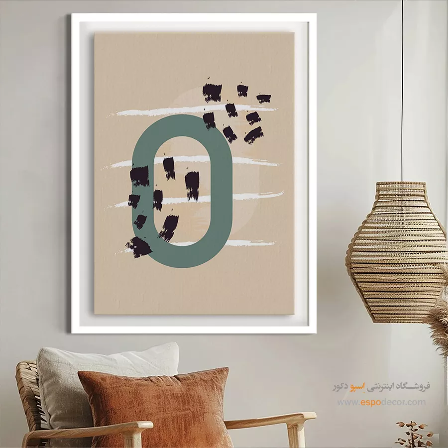 - استفاده از تابلویی با رنگ خنثی در پسزمینه: رنگهای سفید، خاکستری یا بژ، در حالی که رنگ اصلی دیوار یا رنگهای جزئی مبلمان و اکسسوریها در طرح آن تکرار شده باشد. این روش تعادل را در فضا تضمین کرده و از شلوغی بصری جلوگیری میکند.