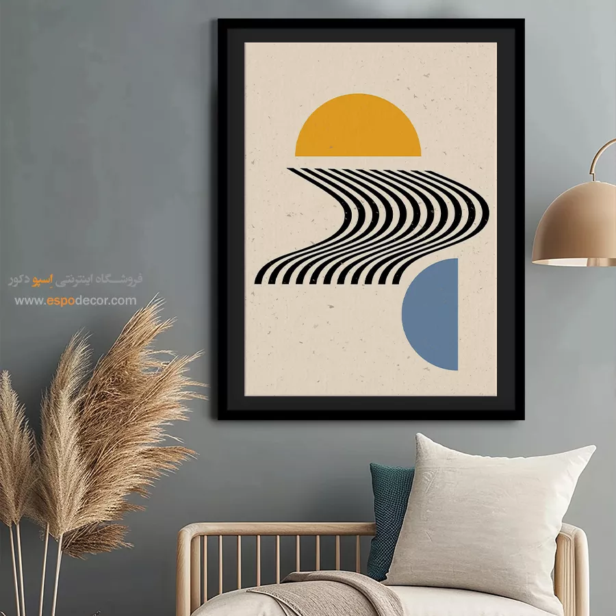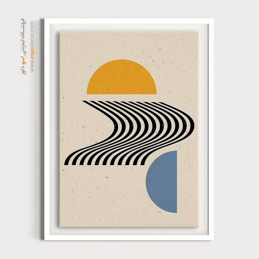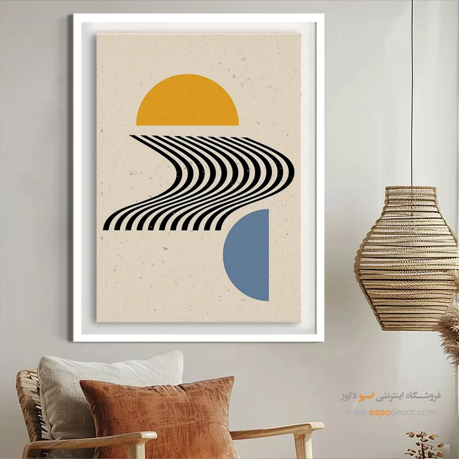 سبک مینیمال: تمرکز بر سادگی است. تابلوهای مینیمال آرت با خطوط ساده، اشکال هندسی و پالت رنگی خنثی (مانند سیاه، سفید، خاکستری یا بژ) ایدهآل هستند. این تابلوها اغلب بدون قاب یا با کلاف ساده نصب میشوند تا تأکید بر مفهوم و فضای خالی باشد.