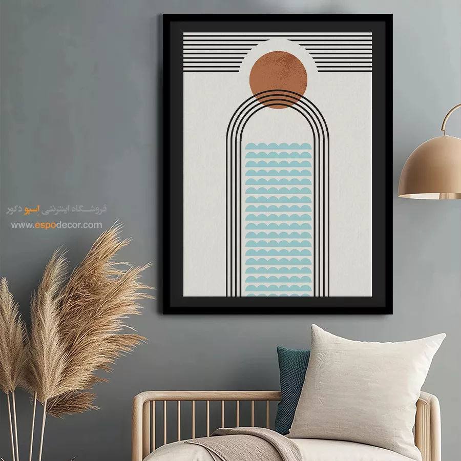 سبک مینیمال: تمرکز بر سادگی است. تابلوهای مینیمال آرت با خطوط ساده، اشکال هندسی و پالت رنگی خنثی (مانند سیاه، سفید، خاکستری یا بژ) ایده‌آل هستند. این تابلوها اغلب بدون قاب یا با کلاف ساده نصب می‌شوند تا تأکید بر مفهوم و فضای خالی باشد.