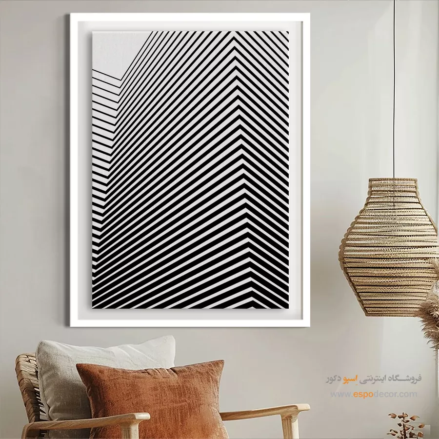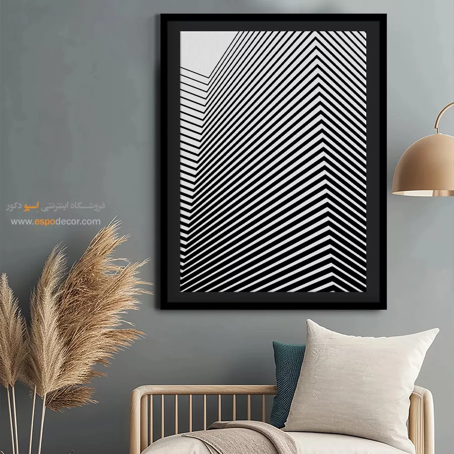 سبک مینیمال: تمرکز بر سادگی است. تابلوهای مینیمال آرت با خطوط ساده، اشکال هندسی و پالت رنگی خنثی (مانند سیاه، سفید، خاکستری یا بژ) ایدهآل هستند. این تابلوها اغلب بدون قاب یا با کلاف ساده نصب میشوند تا تأکید بر مفهوم و فضای خالی باشد.
