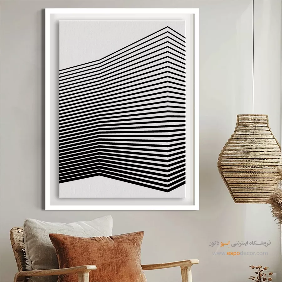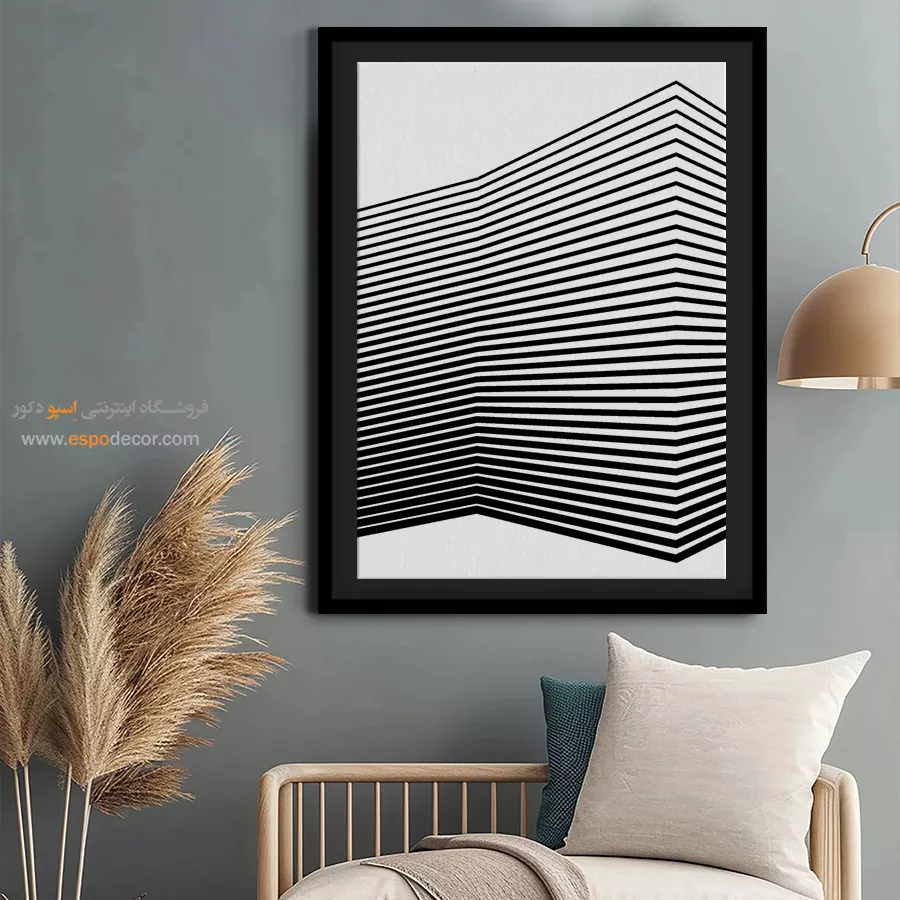 سبک مینیمال: تمرکز بر سادگی است. تابلوهای مینیمال آرت با خطوط ساده، اشکال هندسی و پالت رنگی خنثی (مانند سیاه، سفید، خاکستری یا بژ) ایدهآل هستند. این تابلوها اغلب بدون قاب یا با کلاف ساده نصب میشوند تا تأکید بر مفهوم و فضای خالی باشد.