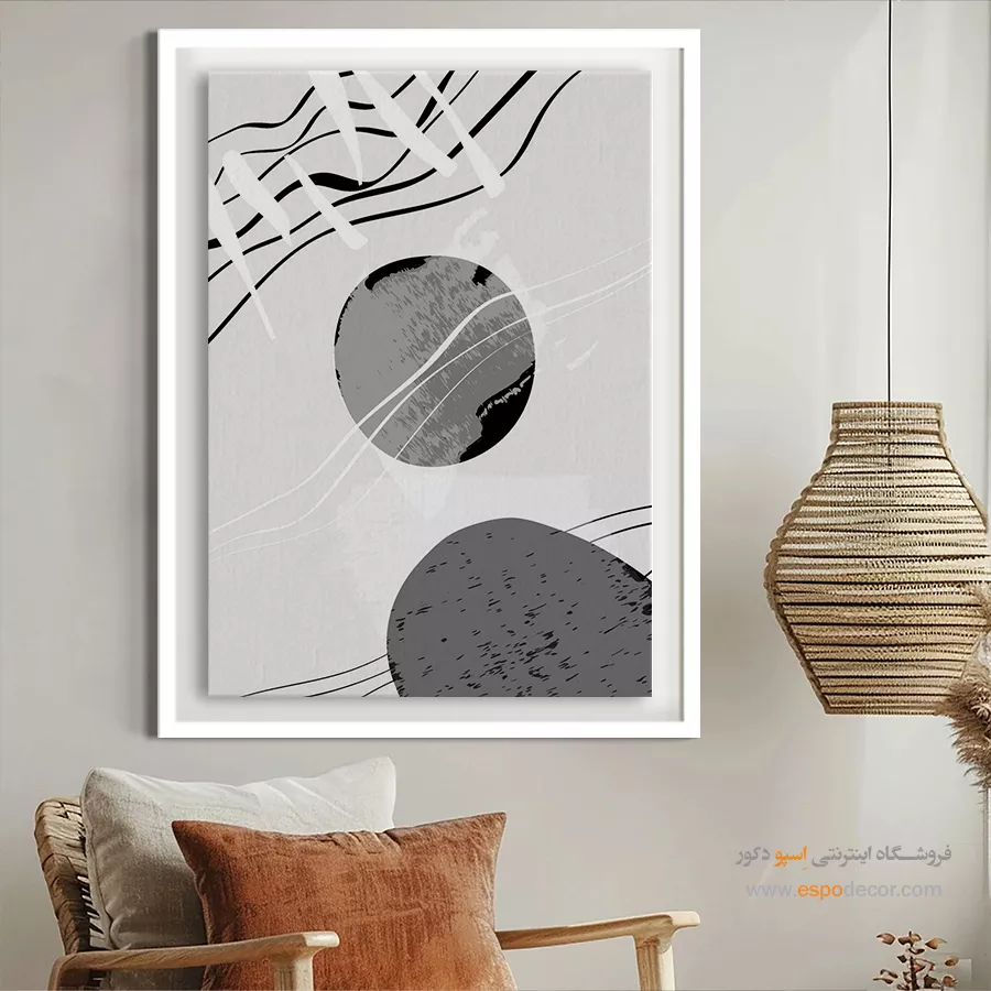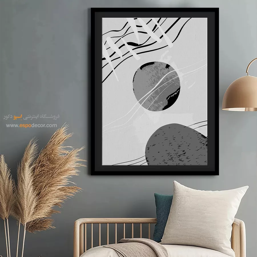سبک مینیمال: تمرکز بر سادگی است. تابلوهای مینیمال آرت با خطوط ساده، اشکال هندسی و پالت رنگی خنثی (مانند سیاه، سفید، خاکستری یا بژ) ایدهآل هستند. این تابلوها اغلب بدون قاب یا با کلاف ساده نصب میشوند تا تأکید بر مفهوم و فضای خالی باشد.