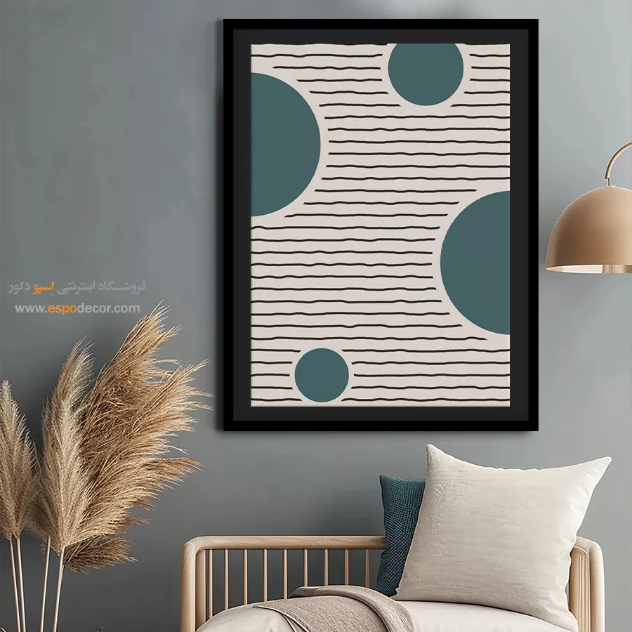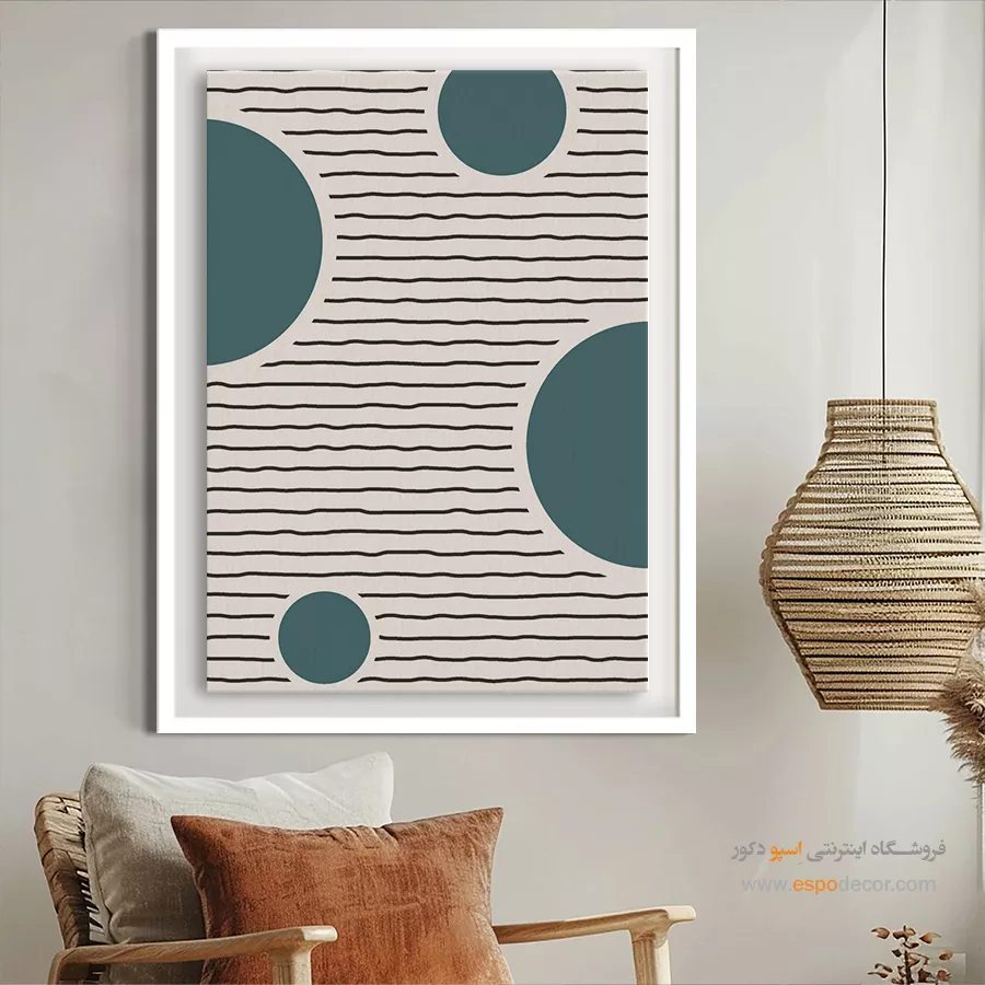 سبک مینیمال: تمرکز بر سادگی است. تابلوهای مینیمال آرت با خطوط ساده، اشکال هندسی و پالت رنگی خنثی (مانند سیاه، سفید، خاکستری یا بژ) ایدهآل هستند. این تابلوها اغلب بدون قاب یا با کلاف ساده نصب میشوند تا تأکید بر مفهوم و فضای خالی باشد.