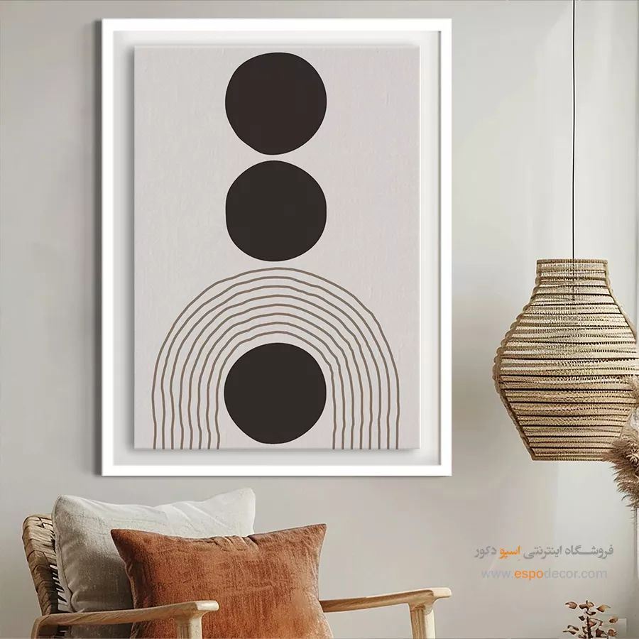 سبک مینیمال: تمرکز بر سادگی است. تابلوهای مینیمال آرت با خطوط ساده، اشکال هندسی و پالت رنگی خنثی (مانند سیاه، سفید، خاکستری یا بژ) ایدهآل هستند. این تابلوها اغلب بدون قاب یا با کلاف ساده نصب میشوند تا تأکید بر مفهوم و فضای خالی باشد.