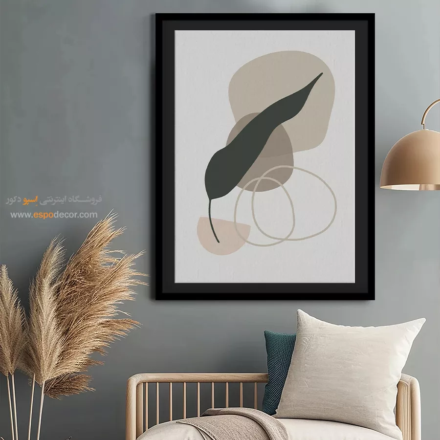 سبک مینیمال: تمرکز بر سادگی است. تابلوهای مینیمال آرت با خطوط ساده، اشکال هندسی و پالت رنگی خنثی (مانند سیاه، سفید، خاکستری یا بژ) ایده‌آل هستند. این تابلوها اغلب بدون قاب یا با کلاف ساده نصب می‌شوند تا تأکید بر مفهوم و فضای خالی باشد.