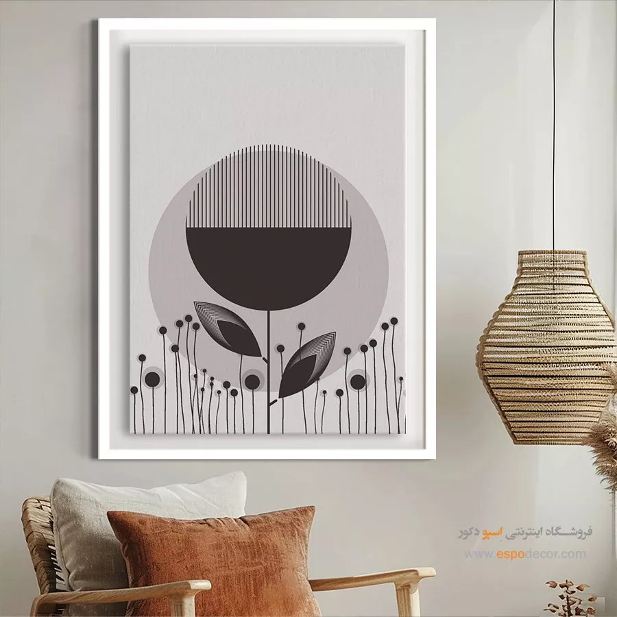 سبک مینیمال: تمرکز بر سادگی است. تابلوهای مینیمال آرت با خطوط ساده، اشکال هندسی و پالت رنگی خنثی (مانند سیاه، سفید، خاکستری یا بژ) ایدهآل هستند. این تابلوها اغلب بدون قاب یا با کلاف ساده نصب میشوند تا تأکید بر مفهوم و فضای خالی باشد.