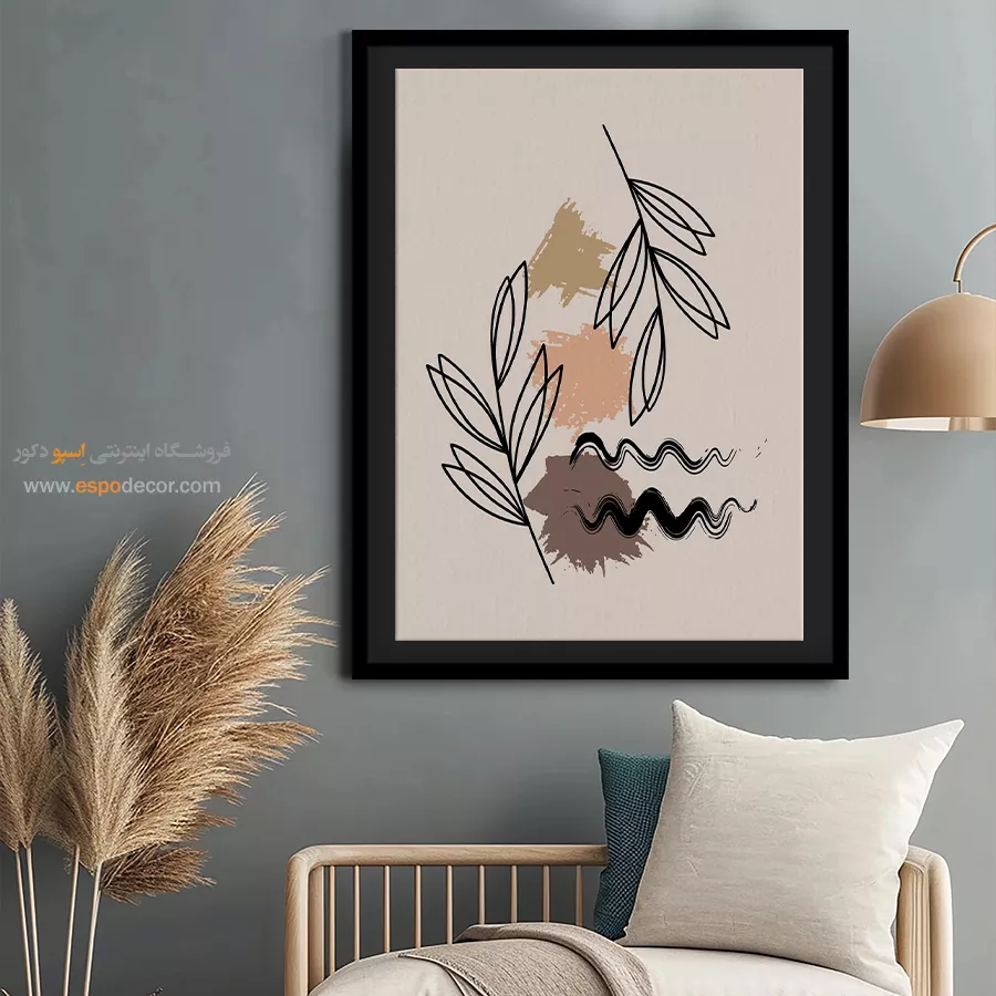 سبک مینیمال: تمرکز بر سادگی است. تابلوهای مینیمال آرت با خطوط ساده، اشکال هندسی و پالت رنگی خنثی (مانند سیاه، سفید، خاکستری یا بژ) ایدهآل هستند. این تابلوها اغلب بدون قاب یا با کلاف ساده نصب میشوند تا تأکید بر مفهوم و فضای خالی باشد.