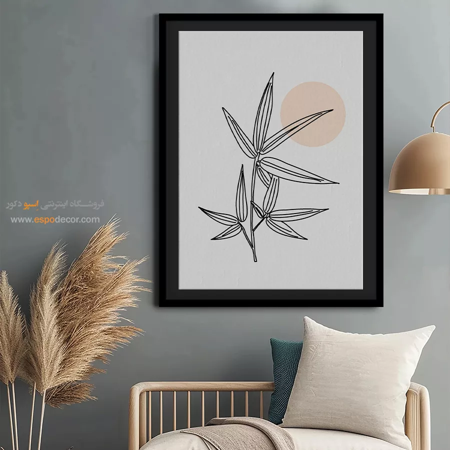 سبک مینیمال: تمرکز بر سادگی است. تابلوهای مینیمال آرت با خطوط ساده، اشکال هندسی و پالت رنگی خنثی (مانند سیاه، سفید، خاکستری یا بژ) ایدهآل هستند. این تابلوها اغلب بدون قاب یا با کلاف ساده نصب میشوند تا تأکید بر مفهوم و فضای خالی باشد.