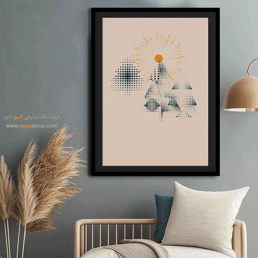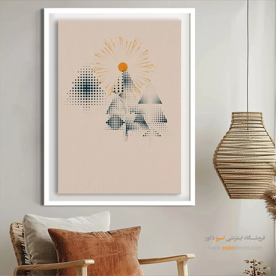 سبک مینیمال: تمرکز بر سادگی است. تابلوهای مینیمال آرت با خطوط ساده، اشکال هندسی و پالت رنگی خنثی (مانند سیاه، سفید، خاکستری یا بژ) ایدهآل هستند. این تابلوها اغلب بدون قاب یا با کلاف ساده نصب میشوند تا تأکید بر مفهوم و فضای خالی باشد.