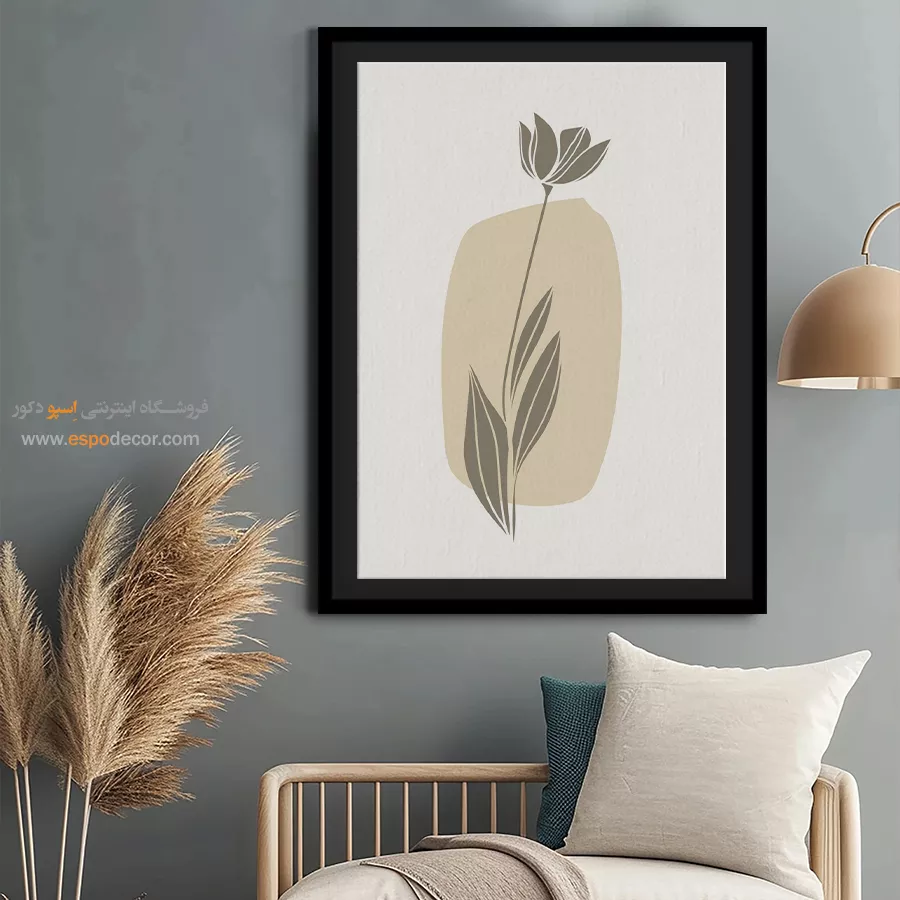 سبک مینیمال: تمرکز بر سادگی است. تابلوهای مینیمال آرت با خطوط ساده، اشکال هندسی و پالت رنگی خنثی (مانند سیاه، سفید، خاکستری یا بژ) ایدهآل هستند. این تابلوها اغلب بدون قاب یا با کلاف ساده نصب میشوند تا تأکید بر مفهوم و فضای خالی باشد.