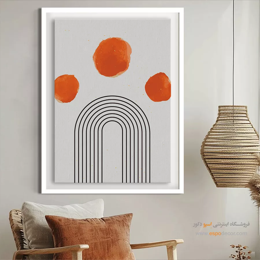 سبک مینیمال: تمرکز بر سادگی است. تابلوهای مینیمال آرت با خطوط ساده، اشکال هندسی و پالت رنگی خنثی (مانند سیاه، سفید، خاکستری یا بژ) ایدهآل هستند. این تابلوها اغلب بدون قاب یا با کلاف ساده نصب میشوند تا تأکید بر مفهوم و فضای خالی باشد.
