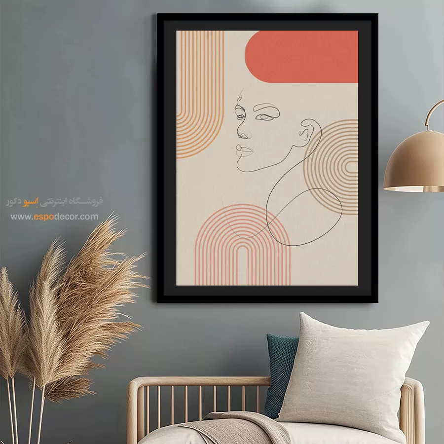 سبک مینیمال: تمرکز بر سادگی است. تابلوهای مینیمال آرت با خطوط ساده، اشکال هندسی و پالت رنگی خنثی (مانند سیاه، سفید، خاکستری یا بژ) ایدهآل هستند. این تابلوها اغلب بدون قاب یا با کلاف ساده نصب میشوند تا تأکید بر مفهوم و فضای خالی باشد.