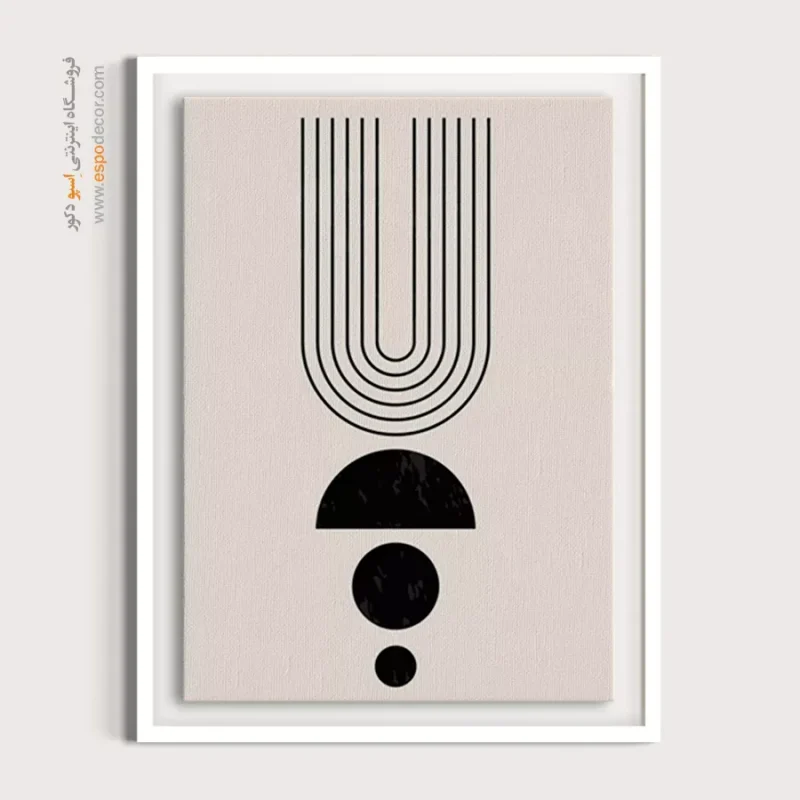 سبک مینیمال: تمرکز بر سادگی است. تابلوهای مینیمال آرت با خطوط ساده، اشکال هندسی و پالت رنگی خنثی (مانند سیاه، سفید، خاکستری یا بژ) ایدهآل هستند. این تابلوها اغلب بدون قاب یا با کلاف ساده نصب میشوند تا تأکید بر مفهوم و فضای خالی باشد.