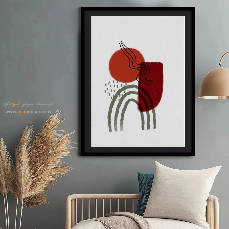 سبک مینیمال: تمرکز بر سادگی است. تابلوهای مینیمال آرت با خطوط ساده، اشکال هندسی و پالت رنگی خنثی (مانند سیاه، سفید، خاکستری یا بژ) ایدهآل هستند. این تابلوها اغلب بدون قاب یا با کلاف ساده نصب میشوند تا تأکید بر مفهوم و فضای خالی باشد.