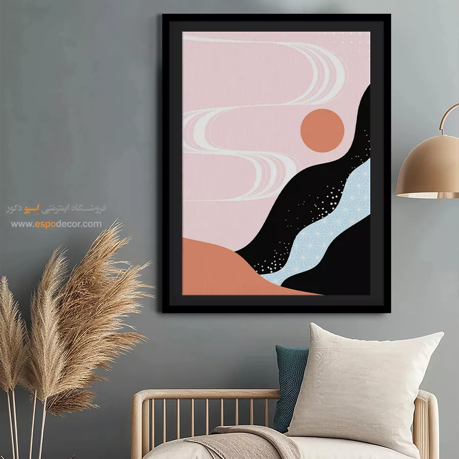 سبک مینیمال: تمرکز بر سادگی است. تابلوهای مینیمال آرت با خطوط ساده، اشکال هندسی و پالت رنگی خنثی (مانند سیاه، سفید، خاکستری یا بژ) ایدهآل هستند. این تابلوها اغلب بدون قاب یا با کلاف ساده نصب میشوند تا تأکید بر مفهوم و فضای خالی باشد.