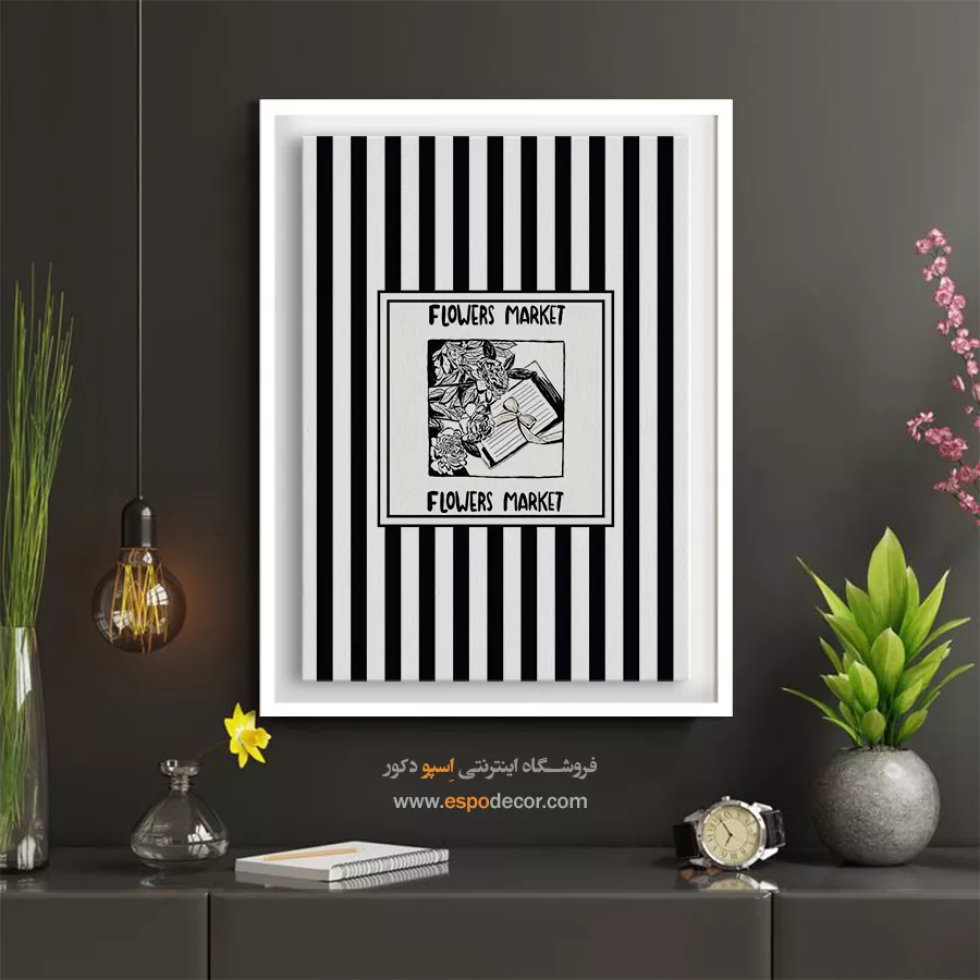 • ادامه طرح اصلی تا کناره‌های بوم: ما در اسپو دکور از این روش استفاده می‌کنیم تا تابلو حالت منسجم و یکپارچه داشته باشد و از نمای کناری نیز جذاب دیده شود.