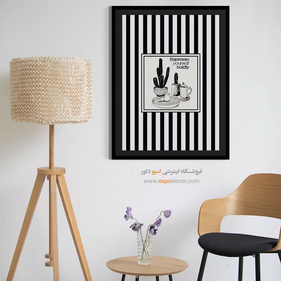 • ادامه طرح اصلی تا کناره‌های بوم: ما در اسپو دکور از این روش استفاده می‌کنیم تا تابلو حالت منسجم و یکپارچه داشته باشد و از نمای کناری نیز جذاب دیده شود.