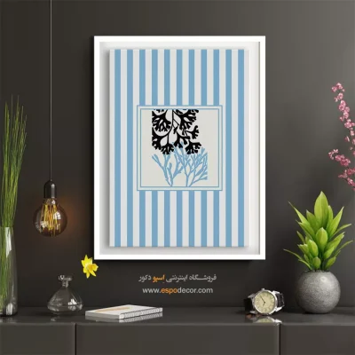 • انتخاب سایه‌های مختلف از رنگ دیوار: مانند تابلو آبی تیره روی دیوار آبی روشن، که حس آرامش و یکپارچگی در فضا ایجاد می‌کند.
