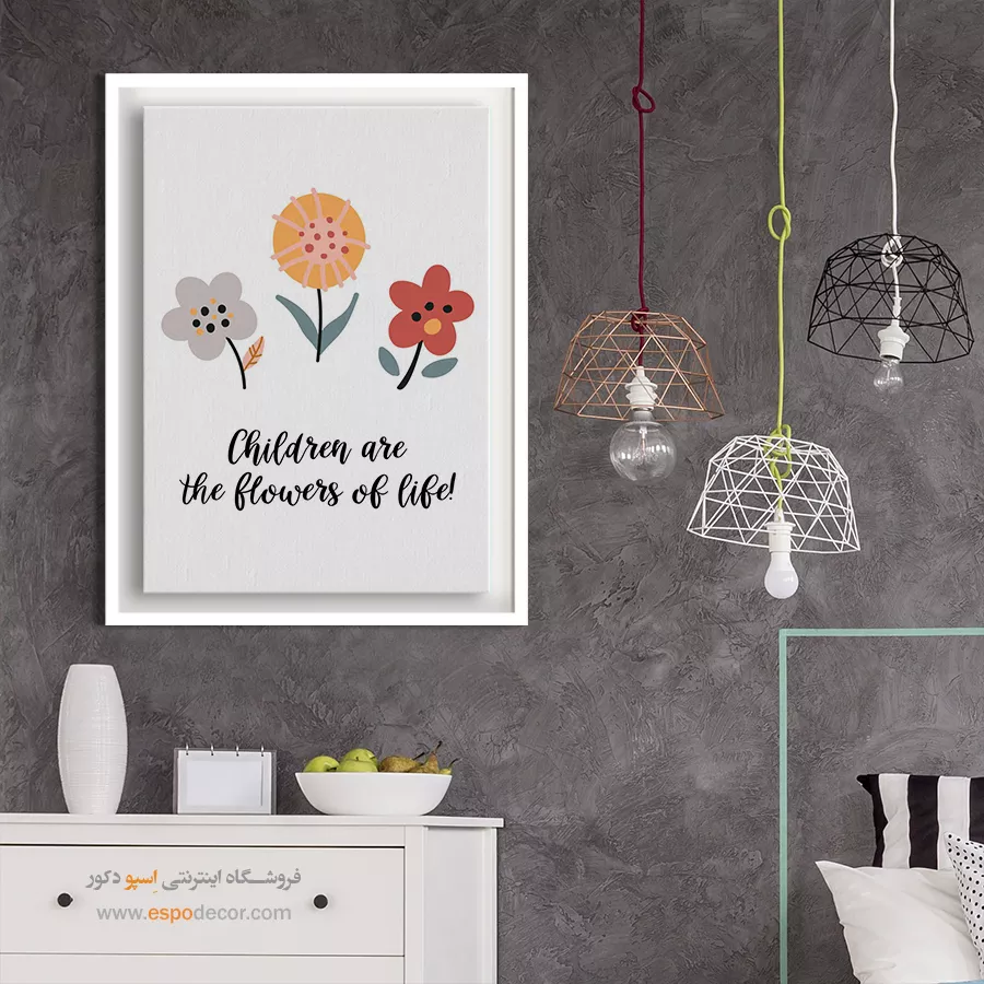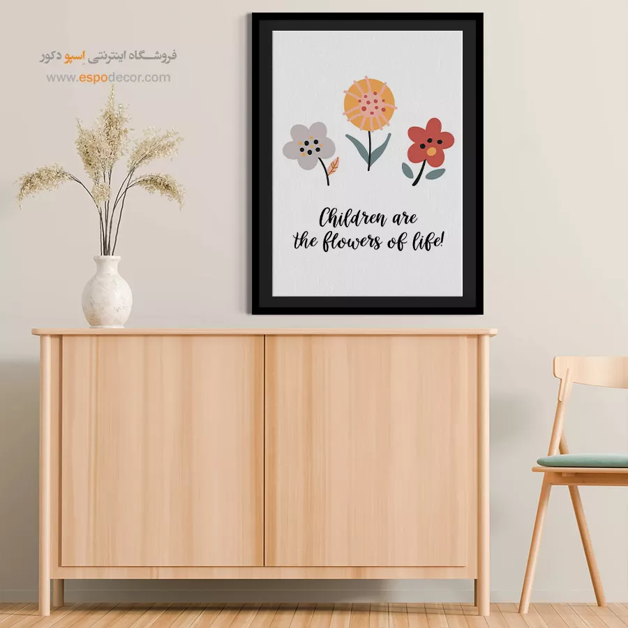 خرید تابلو مینیمال گل - فانتزی – تابلو طراحی خطی - اسپو دکور