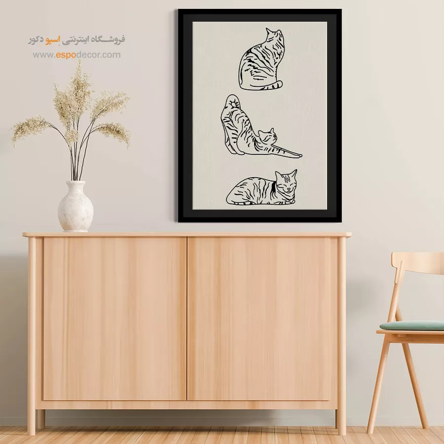 • نصب بالای مبلمان: اگر تابلوها بالای مبل یا کنسول نصب می‌شوند، لبه پایینی آن‌ها باید حدود ۱۵ تا ۳۰ سانتی‌متر بالاتر از لبه بالایی مبلمان باشد.