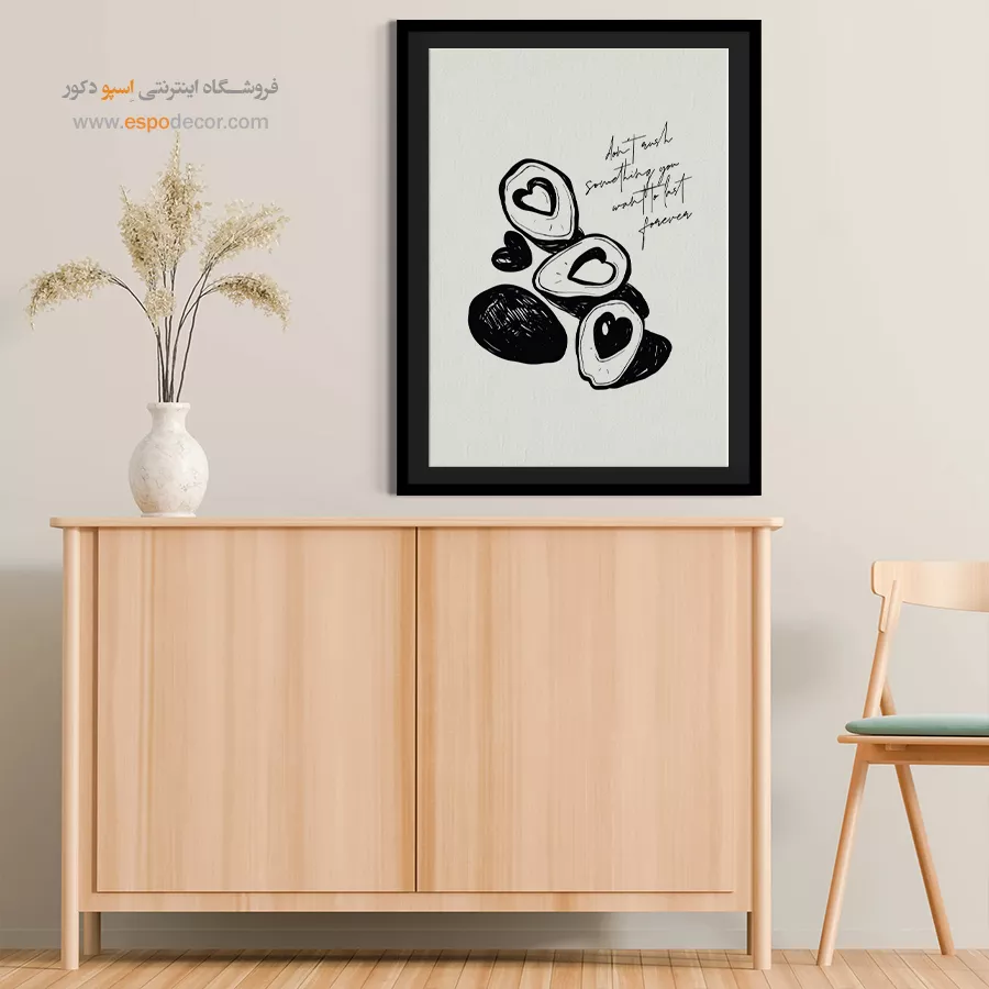 سبک مینیمال: تمرکز بر سادگی است. تابلوهای مینیمال آرت با خطوط ساده، اشکال هندسی و پالت رنگی خنثی (مانند سیاه، سفید، خاکستری یا بژ) ایده‌آل هستند. این تابلوها اغلب بدون قاب یا با کلاف ساده نصب می‌شوند تا تأکید بر مفهوم و فضای خالی باشد.