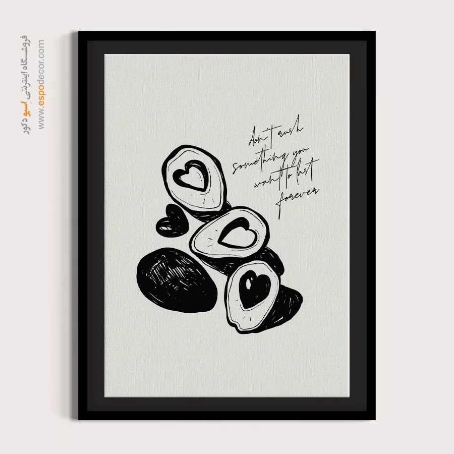 • ادامه طرح اصلی تا کناره‌های بوم: ما در اسپو دکور از این روش استفاده می‌کنیم تا تابلو حالت منسجم و یکپارچه داشته باشد و از نمای کناری نیز جذاب دیده شود.