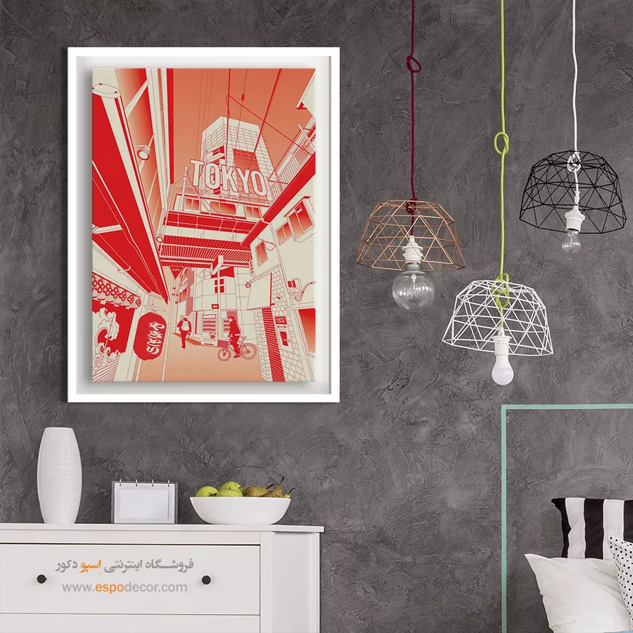 سبک مدرن: آثار انتزاعی، طرح‌های گرافیکی جسورانه و استفاده از رنگ‌های قوی به عنوان یک نقطه کانونی دکوراسیون پیشنهاد می‌شود. تابلوهای چندتکه یا بوم‌های بزرگ با قاب‌های باریک و ساده، تکمیل‌کننده این فضا خواهند بود.