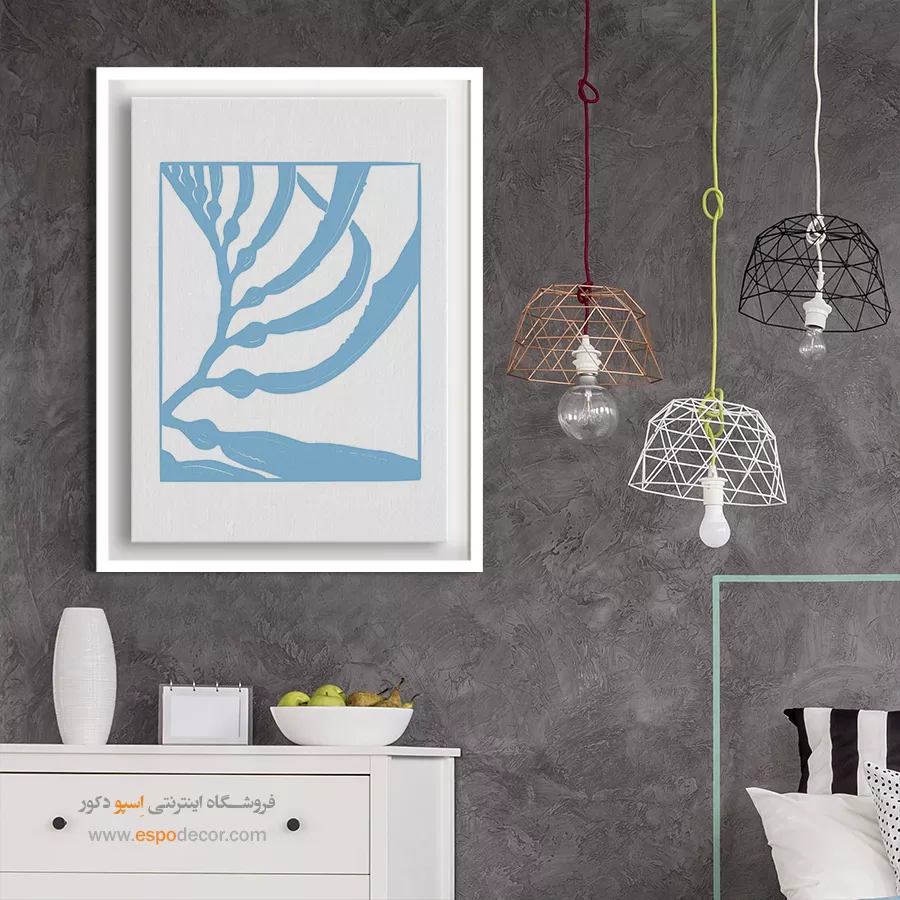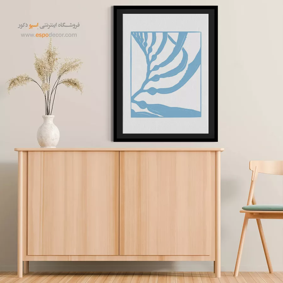 • انتخاب سایه‌های مختلف از رنگ دیوار: مانند تابلو آبی تیره روی دیوار آبی روشن، که حس آرامش و یکپارچگی در فضا ایجاد می‌کند.