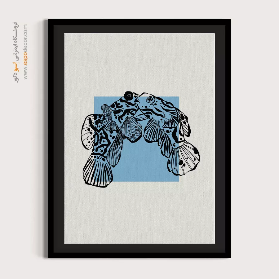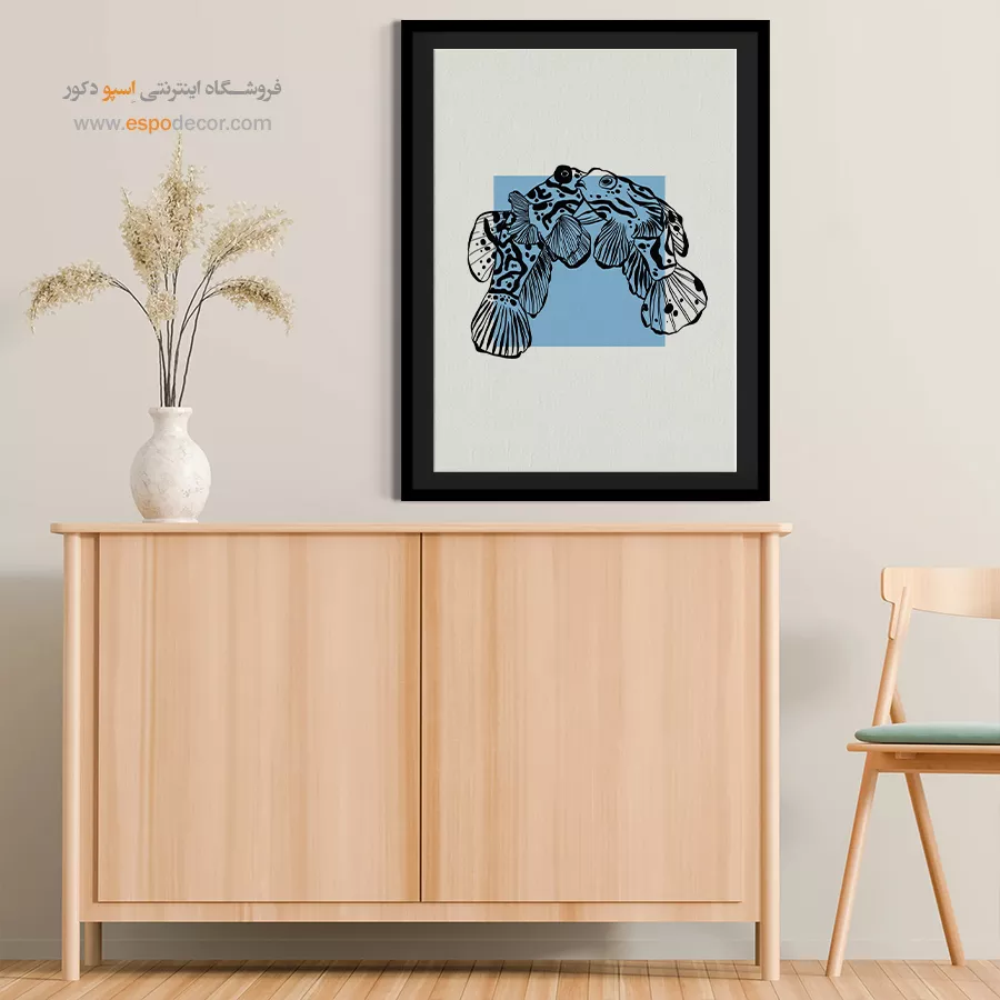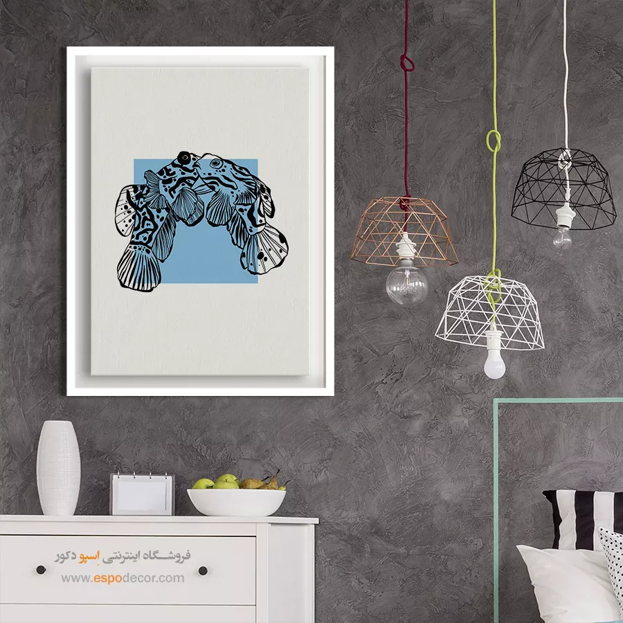 • انتخاب سایه‌های مختلف از رنگ دیوار: مانند تابلو آبی تیره روی دیوار آبی روشن، که حس آرامش و یکپارچگی در فضا ایجاد می‌کند.
