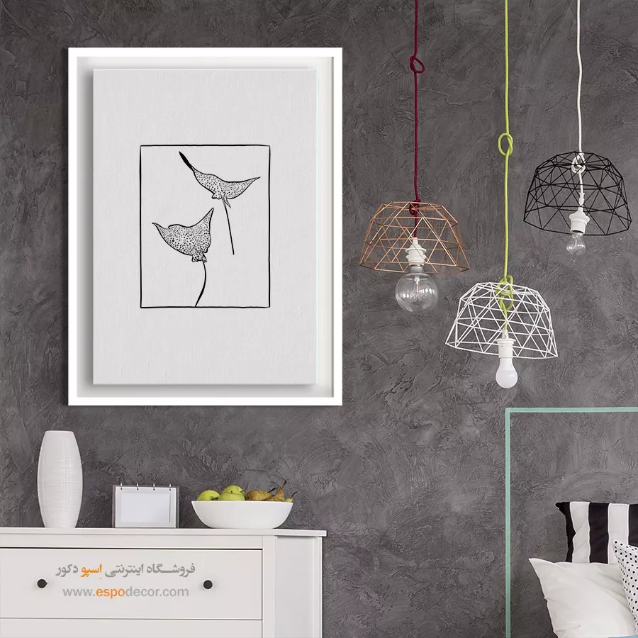 همچنین، استفاده از تابلوهای چندتکه با ابعاد کوچک تا متوسط یا یک تابلوی بزرگ با طرح عمودی (برای بلندتر نشان دادن سقف)، می‌تواند نقطه کانونی جذابی ایجاد کرده و کمبود نور را جبران نماید.
